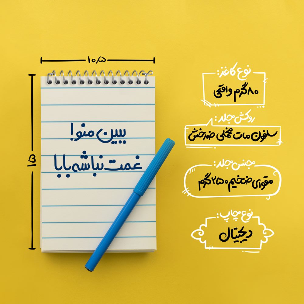 برند خندالو در زمینه تولید انواع دفاتر فانتزی و تحصیلی فعالیت میکند که به دلیل جذابیت ظاهری و طرح های متنوع طرفداران زیادی دارد. دفتر یادداشت خندالو طرح ببین منو ! غمت نباشه بابا محصولی مناسب برای همه عاشقان لوازم التحریر است و همچنین همه کسانی که بنا به موقعیت تحصیل یا شغلشان با دفتر و نوشت افزار زیاد سر و کار دارند. در تولید دفتر یادداشت خندالو طرح ببین منو ! غمت نباشه بابا از نوع صحافی فنر مارپیچ استفاده شده که در این نوع صحافی برگهها به راحتی چرخیده و یا بیرون آورده می شوند. دفتر های خندالو دارای جلد انعطاف پذیر از جنس مقوای گلاسه 250 گرم با روکش سلفون مات مخملی است که به شما امکان میدهد از دفتر خود بدون اینکه نگرانی از شکستن یا خراب شدن جلد را داشته باشید استفاده کنید و همچنین در این دفاتر از کاغذ 80 گرم با کیفیت استفاده شده که باعث میشود هنگام نوشتن به خوبی جوهر قلم بر روی صفحه نشسته و از خط خوردگیها جلوگیری کند. دفتر یادداشت خندالو با جنس و دوام مناسب، برگه های کاملاً سفید و خطوط طوسی دقیق را داراست که انسان را به نوشتن منظم و زیبا ترغیب میکند. طراحی کاملاً مناسب این دفاتر، به همراه کیفیت بالا، از آن یک محصول مورد علاقه و قابل اعتماد برای همه مقاطع تحصیلی میسازد. دفتر یادداشت خندالو طرح ببین منو ! غمت نباشه بابا انتخابی هوشمندانه و مناسب برای افرادی است که به دنبال دفتری با کیفیت و کاربرد عالی هستند. این دفتر، همراه خوبی برای شما در تمام مراحل تحصیل و کار خواهد بود و تجربهای لذتبخش از نوشتن و آموختن را به شما هدیه میدهد.