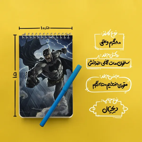 برند خندالو در زمینه تولید انواع دفاتر فانتزی و تحصیلی فعالیت میکند که به دلیل جذابیت ظاهری و طرح های متنوع طرفداران زیادی دارد. دفتر یادداشت خندالو طرح بتمن محصولی مناسب برای همه عاشقان لوازم التحریر است و همچنین همه کسانی که بنا به موقعیت تحصیل یا شغلشان با دفتر و نوشت افزار زیاد سر و کار دارند. در تولید دفتر یادداشت خندالو طرح بتمن از نوع صحافی فنر مارپیچ استفاده شده که در این نوع صحافی برگهها به راحتی چرخیده و یا بیرون آورده می شوند. دفتر های خندالو دارای جلد انعطاف پذیر از جنس مقوای گلاسه 250 گرم با روکش سلفون مات مخملی است که به شما امکان میدهد از دفتر خود بدون اینکه نگرانی از شکستن یا خراب شدن جلد را داشته باشید استفاده کنید و همچنین در این دفاتر از کاغذ 80 گرم با کیفیت استفاده شده که باعث میشود هنگام نوشتن به خوبی جوهر قلم بر روی صفحه نشسته و از خط خوردگیها جلوگیری کند. دفتر یادداشت خندالو با جنس و دوام مناسب، برگه های کاملاً سفید و خطوط طوسی دقیق را داراست که انسان را به نوشتن منظم و زیبا ترغیب میکند. طراحی کاملاً مناسب این دفاتر، به همراه کیفیت بالا، از آن یک محصول مورد علاقه و قابل اعتماد برای همه مقاطع تحصیلی میسازد. دفتر یادداشت خندالو طرح بتمن انتخابی هوشمندانه و مناسب برای افرادی است که به دنبال دفتری با کیفیت و کاربرد عالی هستند. این دفتر، همراه خوبی برای شما در تمام مراحل تحصیل و کار خواهد بود و تجربهای لذتبخش از نوشتن و آموختن را به شما هدیه میدهد.