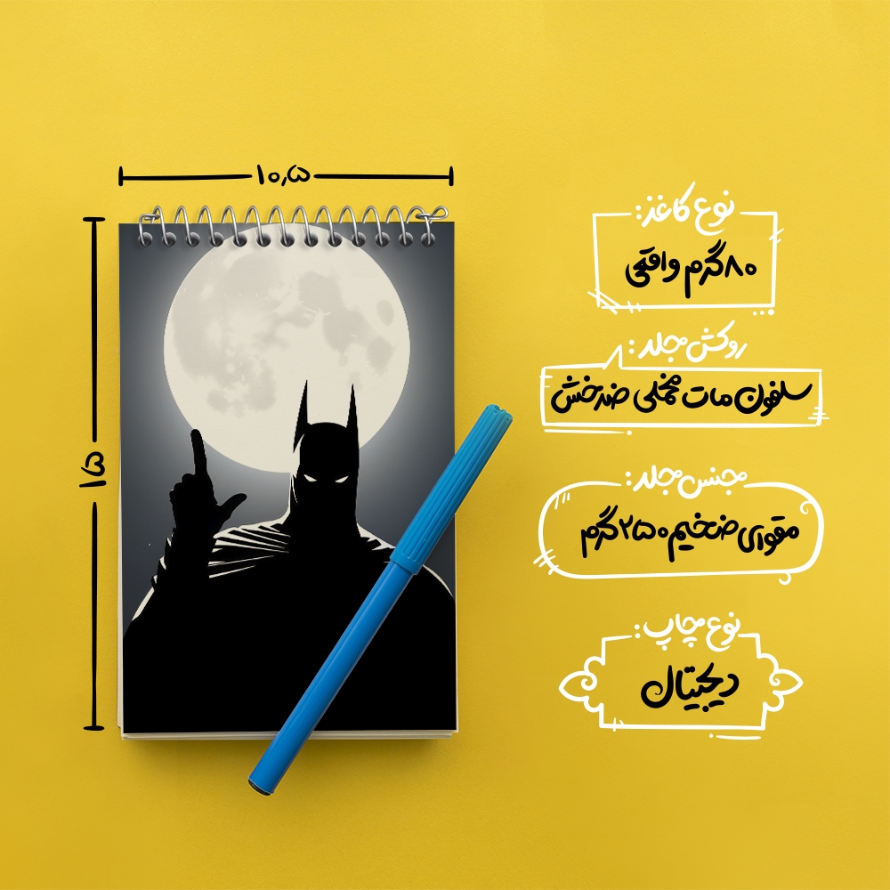 برند خندالو در زمینه تولید انواع دفاتر فانتزی و تحصیلی فعالیت میکند که به دلیل جذابیت ظاهری و طرح های متنوع طرفداران زیادی دارد. دفتر یادداشت خندالو طرح بتمن (Batman) محصولی مناسب برای همه عاشقان لوازم التحریر است و همچنین همه کسانی که بنا به موقعیت تحصیل یا شغلشان با دفتر و نوشت افزار زیاد سر و کار دارند. در تولید دفتر یادداشت خندالو طرح بتمن (Batman) از نوع صحافی فنر مارپیچ استفاده شده که در این نوع صحافی برگه‌ها به راحتی چرخیده و یا بیرون آورده می شوند.