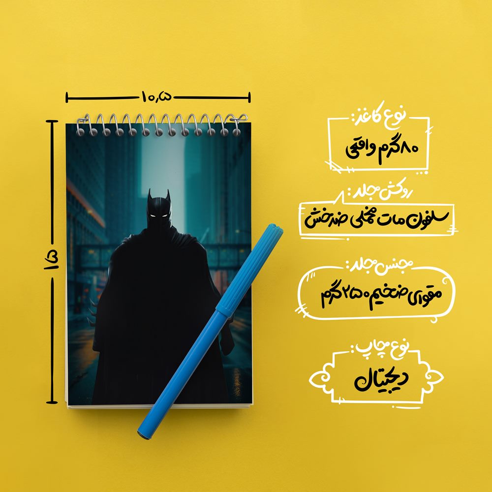 برند خندالو در زمینه تولید انواع دفاتر فانتزی و تحصیلی فعالیت میکند که به دلیل جذابیت ظاهری و طرح های متنوع طرفداران زیادی دارد. دفتر یادداشت خندالو طرح بتمن Batman محصولی مناسب برای همه عاشقان لوازم التحریر است و همچنین همه کسانی که بنا به موقعیت تحصیل یا شغلشان با دفتر و نوشت افزار زیاد سر و کار دارند. در تولید دفتر یادداشت خندالو طرح بتمن Batman از نوع صحافی فنر مارپیچ استفاده شده که در این نوع صحافی برگه‌ها به راحتی چرخیده و یا بیرون آورده می شوند.