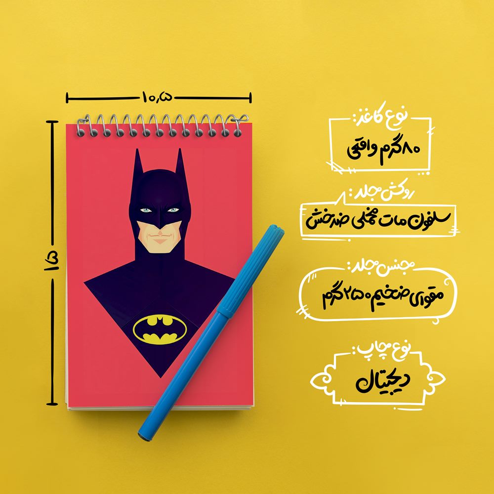 برند خندالو در زمینه تولید انواع دفاتر فانتزی و تحصیلی فعالیت میکند که به دلیل جذابیت ظاهری و طرح های متنوع طرفداران زیادی دارد. دفتر یادداشت خندالو طرح بتمن Batman محصولی مناسب برای همه عاشقان لوازم التحریر است و همچنین همه کسانی که بنا به موقعیت تحصیل یا شغلشان با دفتر و نوشت افزار زیاد سر و کار دارند. در تولید دفتر یادداشت خندالو طرح بتمن Batman از نوع صحافی فنر مارپیچ استفاده شده که در این نوع صحافی برگه‌ها به راحتی چرخیده و یا بیرون آورده می شوند.