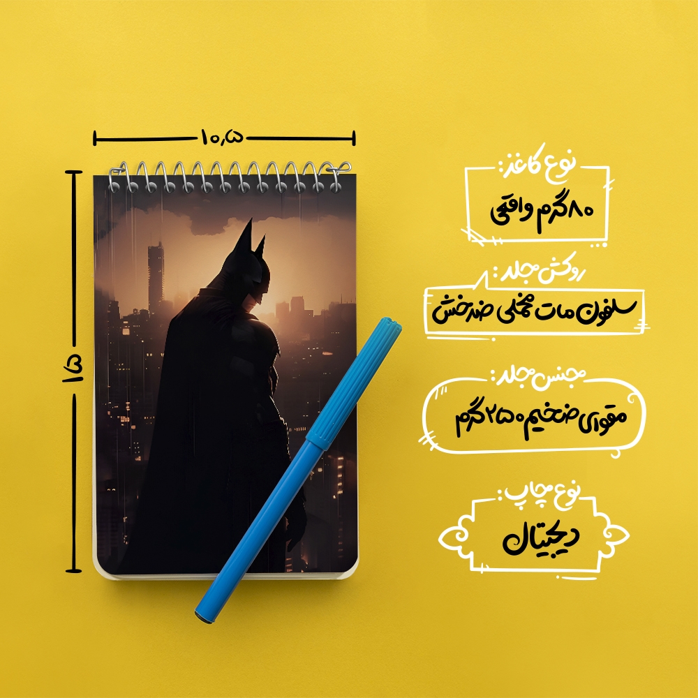برند خندالو در زمینه تولید انواع دفاتر فانتزی و تحصیلی فعالیت میکند که به دلیل جذابیت ظاهری و طرح های متنوع طرفداران زیادی دارد. دفتر یادداشت خندالو طرح بتمن (Batman) محصولی مناسب برای همه عاشقان لوازم التحریر است و همچنین همه کسانی که بنا به موقعیت تحصیل یا شغلشان با دفتر و نوشت افزار زیاد سر و کار دارند. در تولید دفتر یادداشت خندالو طرح بتمن (Batman) از نوع صحافی فنر مارپیچ استفاده شده که در این نوع صحافی برگه‌ها به راحتی چرخیده و یا بیرون آورده می شوند.