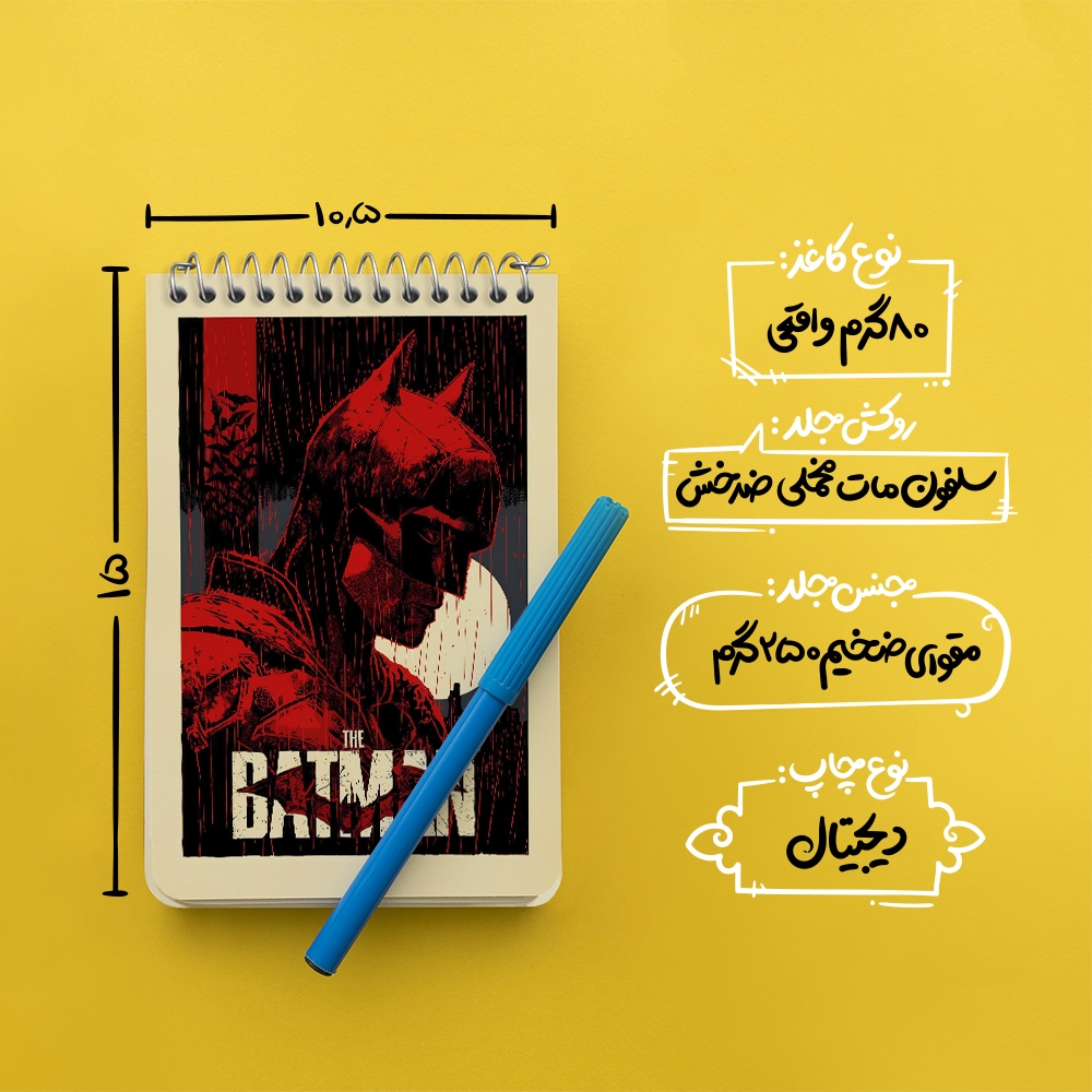 برند خندالو در زمینه تولید انواع دفاتر فانتزی و تحصیلی فعالیت میکند که به دلیل جذابیت ظاهری و طرح های متنوع طرفداران زیادی دارد. دفتر یادداشت خندالو طرح بتمن (Batman) محصولی مناسب برای همه عاشقان لوازم التحریر است و همچنین همه کسانی که بنا به موقعیت تحصیل یا شغلشان با دفتر و نوشت افزار زیاد سر و کار دارند. در تولید دفتر یادداشت خندالو طرح بتمن (Batman) از نوع صحافی فنر مارپیچ استفاده شده که در این نوع صحافی برگه‌ها به راحتی چرخیده و یا بیرون آورده می شوند.