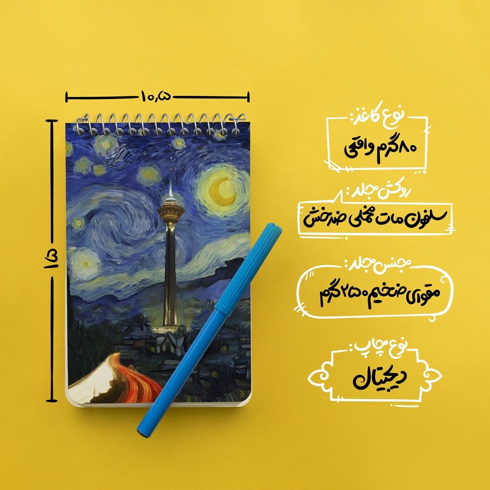 دفتر یادداشت برج میلاد در شب پر ستاره