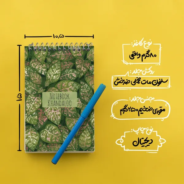 برند خندالو در زمینه تولید انواع دفاتر فانتزی و تحصیلی فعالیت میکند که به دلیل جذابیت ظاهری و طرح های متنوع طرفداران زیادی دارد. دفتر یادداشت خندالو طرح برگ و گیاه محصولی مناسب برای همه عاشقان لوازم التحریر است و همچنین همه کسانی که بنا به موقعیت تحصیل یا شغلشان با دفتر و نوشت افزار زیاد سر و کار دارند. در تولید دفتر یادداشت خندالو طرح برگ و گیاه از نوع صحافی فنر مارپیچ استفاده شده که در این نوع صحافی برگه‌ها به راحتی چرخیده و یا بیرون آورده می شوند.