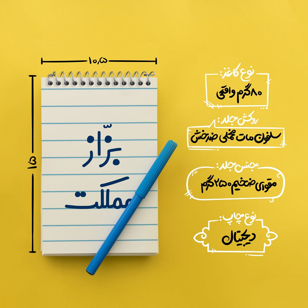 برند خندالو در زمینه تولید انواع دفاتر فانتزی و تحصیلی فعالیت میکند که به دلیل جذابیت ظاهری و طرح های متنوع طرفداران زیادی دارد. دفتر یادداشت خندالو طرح بزاز مملکت محصولی مناسب برای همه عاشقان لوازم التحریر است و همچنین همه کسانی که بنا به موقعیت تحصیل یا شغلشان با دفتر و نوشت افزار زیاد سر و کار دارند. در تولید دفتر یادداشت خندالو طرح بزاز مملکت از نوع صحافی فنر مارپیچ استفاده شده که در این نوع صحافی برگهها به راحتی چرخیده و یا بیرون آورده می شوند. دفتر های خندالو دارای جلد انعطاف پذیر از جنس مقوای گلاسه 250 گرم با روکش سلفون مات مخملی است که به شما امکان میدهد از دفتر خود بدون اینکه نگرانی از شکستن یا خراب شدن جلد را داشته باشید استفاده کنید و همچنین در این دفاتر از کاغذ 80 گرم با کیفیت استفاده شده که باعث میشود هنگام نوشتن به خوبی جوهر قلم بر روی صفحه نشسته و از خط خوردگیها جلوگیری کند. دفتر یادداشت خندالو با جنس و دوام مناسب، برگه های کاملاً سفید و خطوط طوسی دقیق را داراست که انسان را به نوشتن منظم و زیبا ترغیب میکند. طراحی کاملاً مناسب این دفاتر، به همراه کیفیت بالا، از آن یک محصول مورد علاقه و قابل اعتماد برای همه مقاطع تحصیلی میسازد. دفتر یادداشت خندالو طرح بزاز مملکت انتخابی هوشمندانه و مناسب برای افرادی است که به دنبال دفتری با کیفیت و کاربرد عالی هستند. این دفتر، همراه خوبی برای شما در تمام مراحل تحصیل و کار خواهد بود و تجربهای لذتبخش از نوشتن و آموختن را به شما هدیه میدهد.