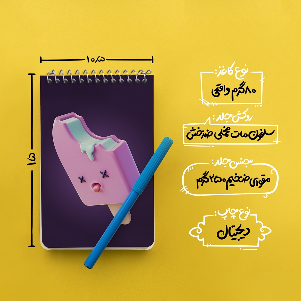 برند خندالو در زمینه تولید انواع دفاتر فانتزی و تحصیلی فعالیت میکند که به دلیل جذابیت ظاهری و طرح های متنوع طرفداران زیادی دارد. دفتر یادداشت خندالو طرح بستنی بامزه محصولی مناسب برای همه عاشقان لوازم التحریر است و همچنین همه کسانی که بنا به موقعیت تحصیل یا شغلشان با دفتر و نوشت افزار زیاد سر و کار دارند. در تولید دفتر یادداشت خندالو طرح بستنی بامزه از نوع صحافی فنر مارپیچ استفاده شده که در این نوع صحافی برگهها به راحتی چرخیده و یا بیرون آورده می شوند. دفتر های خندالو دارای جلد انعطاف پذیر از جنس مقوای گلاسه 250 گرم با روکش سلفون مات مخملی است که به شما امکان میدهد از دفتر خود بدون اینکه نگرانی از شکستن یا خراب شدن جلد را داشته باشید استفاده کنید و همچنین در این دفاتر از کاغذ 80 گرم با کیفیت استفاده شده که باعث میشود هنگام نوشتن به خوبی جوهر قلم بر روی صفحه نشسته و از خط خوردگیها جلوگیری کند. دفتر یادداشت خندالو با جنس و دوام مناسب، برگه های کاملاً سفید و خطوط طوسی دقیق را داراست که انسان را به نوشتن منظم و زیبا ترغیب میکند. طراحی کاملاً مناسب این دفاتر، به همراه کیفیت بالا، از آن یک محصول مورد علاقه و قابل اعتماد برای همه مقاطع تحصیلی میسازد. دفتر یادداشت خندالو طرح بستنی بامزه انتخابی هوشمندانه و مناسب برای افرادی است که به دنبال دفتری با کیفیت و کاربرد عالی هستند. این دفتر، همراه خوبی برای شما در تمام مراحل تحصیل و کار خواهد بود و تجربهای لذتبخش از نوشتن و آموختن را به شما هدیه میدهد.