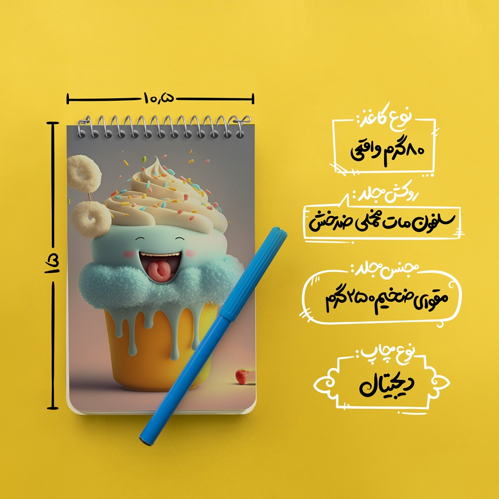 برند خندالو در زمینه تولید انواع دفاتر فانتزی و تحصیلی فعالیت میکند که به دلیل جذابیت ظاهری و طرح های متنوع طرفداران زیادی دارد. دفتر یادداشت خندالو طرح بستنی بامزه محصولی مناسب برای همه عاشقان لوازم التحریر است و همچنین همه کسانی که بنا به موقعیت تحصیل یا شغلشان با دفتر و نوشت افزار زیاد سر و کار دارند. در تولید دفتر یادداشت خندالو طرح بستنی بامزه از نوع صحافی فنر مارپیچ استفاده شده که در این نوع صحافی برگه‌ها به راحتی چرخیده و یا بیرون آورده می شوند.