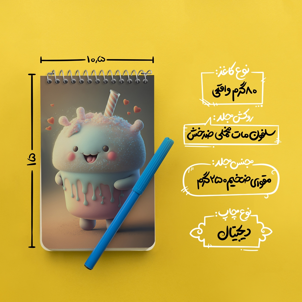 برند خندالو در زمینه تولید انواع دفاتر فانتزی و تحصیلی فعالیت میکند که به دلیل جذابیت ظاهری و طرح های متنوع طرفداران زیادی دارد. دفتر یادداشت خندالو طرح بستنی بامزه محصولی مناسب برای همه عاشقان لوازم التحریر است و همچنین همه کسانی که بنا به موقعیت تحصیل یا شغلشان با دفتر و نوشت افزار زیاد سر و کار دارند. در تولید دفتر یادداشت خندالو طرح بستنی بامزه از نوع صحافی فنر مارپیچ استفاده شده که در این نوع صحافی برگهها به راحتی چرخیده و یا بیرون آورده می شوند. دفتر های خندالو دارای جلد انعطاف پذیر از جنس مقوای گلاسه 250 گرم با روکش سلفون مات مخملی است که به شما امکان میدهد از دفتر خود بدون اینکه نگرانی از شکستن یا خراب شدن جلد را داشته باشید استفاده کنید و همچنین در این دفاتر از کاغذ 80 گرم با کیفیت استفاده شده که باعث میشود هنگام نوشتن به خوبی جوهر قلم بر روی صفحه نشسته و از خط خوردگیها جلوگیری کند. دفتر یادداشت خندالو با جنس و دوام مناسب، برگه های کاملاً سفید و خطوط طوسی دقیق را داراست که انسان را به نوشتن منظم و زیبا ترغیب میکند. طراحی کاملاً مناسب این دفاتر، به همراه کیفیت بالا، از آن یک محصول مورد علاقه و قابل اعتماد برای همه مقاطع تحصیلی میسازد. دفتر یادداشت خندالو طرح بستنی بامزه انتخابی هوشمندانه و مناسب برای افرادی است که به دنبال دفتری با کیفیت و کاربرد عالی هستند. این دفتر، همراه خوبی برای شما در تمام مراحل تحصیل و کار خواهد بود و تجربهای لذتبخش از نوشتن و آموختن را به شما هدیه میدهد.