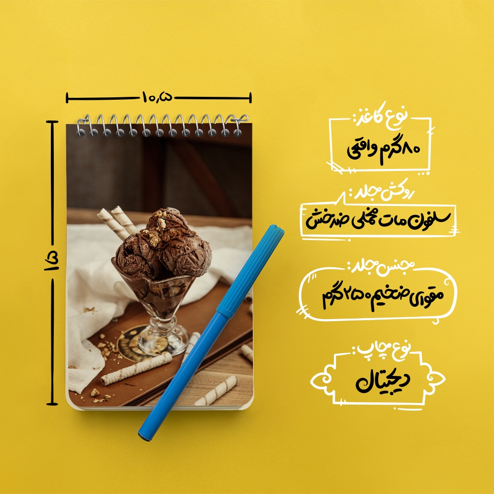برند خندالو در زمینه تولید انواع دفاتر فانتزی و تحصیلی فعالیت میکند که به دلیل جذابیت ظاهری و طرح های متنوع طرفداران زیادی دارد. دفتر یادداشت خندالو طرح بستنی شکلاتی محصولی مناسب برای همه عاشقان لوازم التحریر است و همچنین همه کسانی که بنا به موقعیت تحصیل یا شغلشان با دفتر و نوشت افزار زیاد سر و کار دارند. در تولید دفتر یادداشت خندالو طرح بستنی شکلاتی از نوع صحافی فنر مارپیچ استفاده شده که در این نوع صحافی برگهها به راحتی چرخیده و یا بیرون آورده می شوند. دفتر های خندالو دارای جلد انعطاف پذیر از جنس مقوای گلاسه 250 گرم با روکش سلفون مات مخملی است که به شما امکان میدهد از دفتر خود بدون اینکه نگرانی از شکستن یا خراب شدن جلد را داشته باشید استفاده کنید و همچنین در این دفاتر از کاغذ 80 گرم با کیفیت استفاده شده که باعث میشود هنگام نوشتن به خوبی جوهر قلم بر روی صفحه نشسته و از خط خوردگیها جلوگیری کند. دفتر یادداشت خندالو با جنس و دوام مناسب، برگه های کاملاً سفید و خطوط طوسی دقیق را داراست که انسان را به نوشتن منظم و زیبا ترغیب میکند. طراحی کاملاً مناسب این دفاتر، به همراه کیفیت بالا، از آن یک محصول مورد علاقه و قابل اعتماد برای همه مقاطع تحصیلی میسازد. دفتر یادداشت خندالو طرح بستنی شکلاتی انتخابی هوشمندانه و مناسب برای افرادی است که به دنبال دفتری با کیفیت و کاربرد عالی هستند. این دفتر، همراه خوبی برای شما در تمام مراحل تحصیل و کار خواهد بود و تجربهای لذتبخش از نوشتن و آموختن را به شما هدیه میدهد.