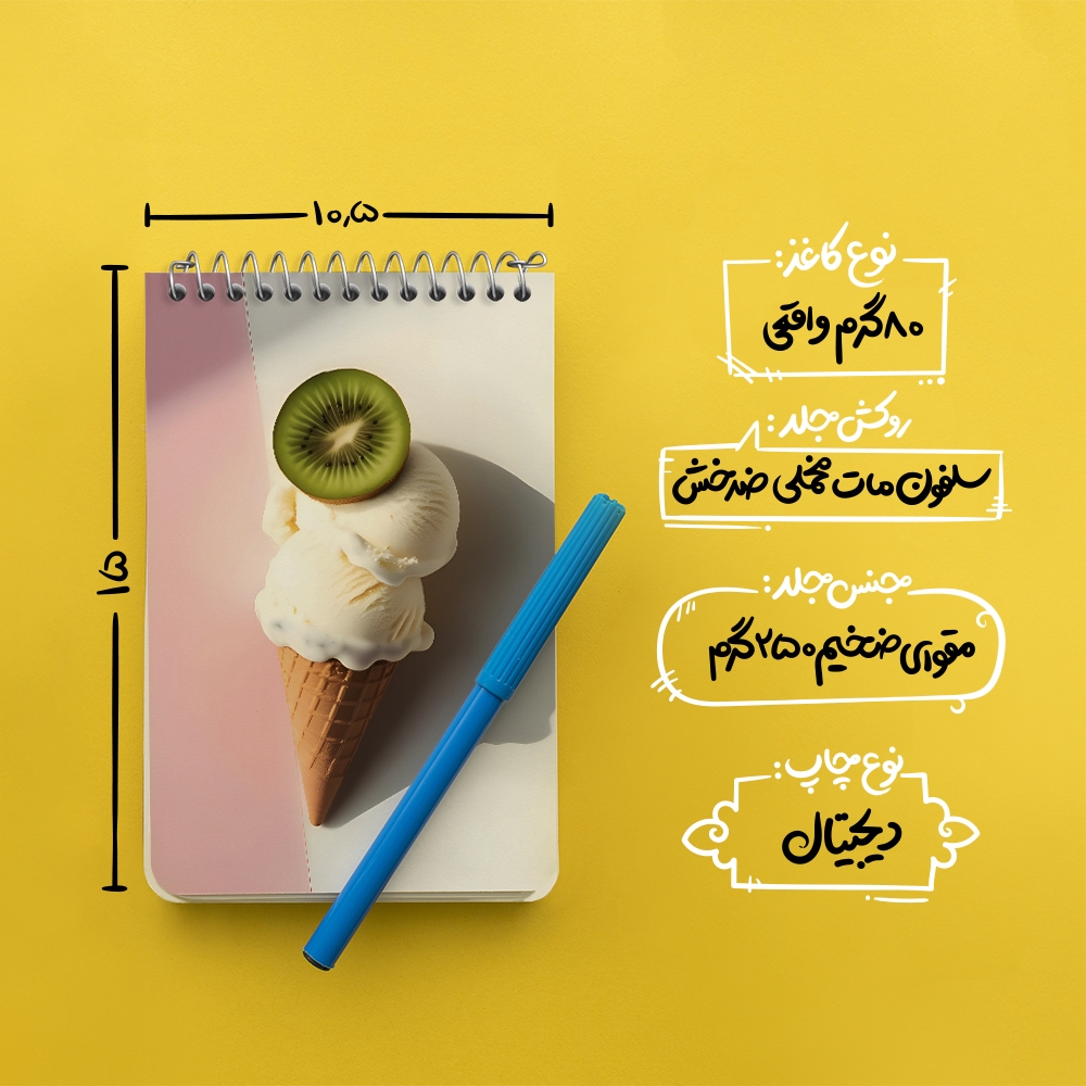 برند خندالو در زمینه تولید انواع دفاتر فانتزی و تحصیلی فعالیت میکند که به دلیل جذابیت ظاهری و طرح های متنوع طرفداران زیادی دارد. دفتر یادداشت خندالو طرح بستنی محصولی مناسب برای همه عاشقان لوازم التحریر است و همچنین همه کسانی که بنا به موقعیت تحصیل یا شغلشان با دفتر و نوشت افزار زیاد سر و کار دارند. در تولید دفتر یادداشت خندالو طرح بستنی از نوع صحافی فنر مارپیچ استفاده شده که در این نوع صحافی برگه‌ها به راحتی چرخیده و یا بیرون آورده می شوند.
