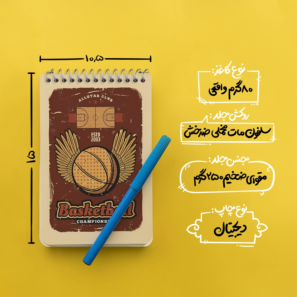 برند خندالو در زمینه تولید انواع دفاتر فانتزی و تحصیلی فعالیت میکند که به دلیل جذابیت ظاهری و طرح های متنوع طرفداران زیادی دارد. دفتر یادداشت خندالو طرح بسکتبال (Basketball) محصولی مناسب برای همه عاشقان لوازم التحریر است و همچنین همه کسانی که بنا به موقعیت تحصیل یا شغلشان با دفتر و نوشت افزار زیاد سر و کار دارند. در تولید دفتر یادداشت خندالو طرح بسکتبال (Basketball) از نوع صحافی فنر مارپیچ استفاده شده که در این نوع صحافی برگه‌ها به راحتی چرخیده و یا بیرون آورده می شوند.