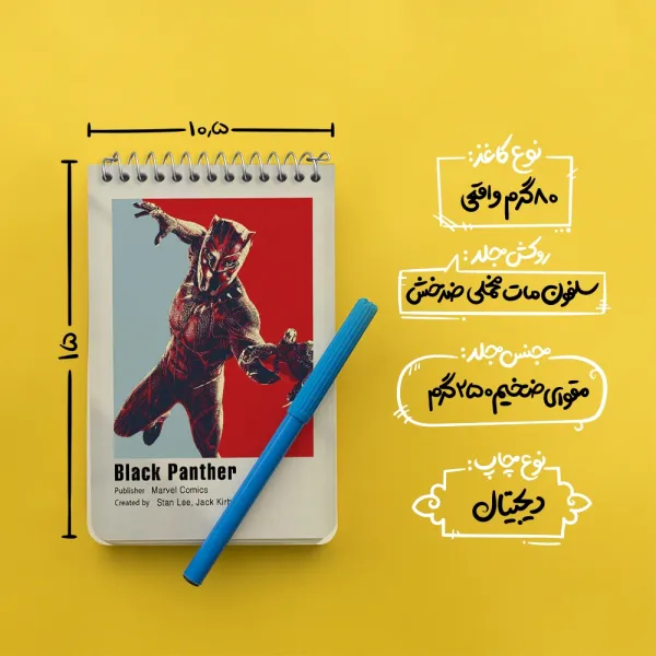 برند خندالو در زمینه تولید انواع دفاتر فانتزی و تحصیلی فعالیت میکند که به دلیل جذابیت ظاهری و طرح های متنوع طرفداران زیادی دارد. دفتر یادداشت خندالو طرح بلک پانتر (Black Panther) محصولی مناسب برای همه عاشقان لوازم التحریر است و همچنین همه کسانی که بنا به موقعیت تحصیل یا شغلشان با دفتر و نوشت افزار زیاد سر و کار دارند. در تولید دفتر یادداشت خندالو طرح بلک پانتر (Black Panther) از نوع صحافی فنر مارپیچ استفاده شده که در این نوع صحافی برگهها به راحتی چرخیده و یا بیرون آورده می شوند. دفتر های خندالو دارای جلد انعطاف پذیر از جنس مقوای گلاسه 250 گرم با روکش سلفون مات مخملی است که به شما امکان میدهد از دفتر خود بدون اینکه نگرانی از شکستن یا خراب شدن جلد را داشته باشید استفاده کنید و همچنین در این دفاتر از کاغذ 80 گرم با کیفیت استفاده شده که باعث میشود هنگام نوشتن به خوبی جوهر قلم بر روی صفحه نشسته و از خط خوردگیها جلوگیری کند. دفتر یادداشت خندالو با جنس و دوام مناسب، برگه های کاملاً سفید و خطوط طوسی دقیق را داراست که انسان را به نوشتن منظم و زیبا ترغیب میکند. طراحی کاملاً مناسب این دفاتر، به همراه کیفیت بالا، از آن یک محصول مورد علاقه و قابل اعتماد برای همه مقاطع تحصیلی میسازد. دفتر یادداشت خندالو طرح بلک پانتر (Black Panther) انتخابی هوشمندانه و مناسب برای افرادی است که به دنبال دفتری با کیفیت و کاربرد عالی هستند. این دفتر، همراه خوبی برای شما در تمام مراحل تحصیل و کار خواهد بود و تجربهای لذتبخش از نوشتن و آموختن را به شما هدیه میدهد.