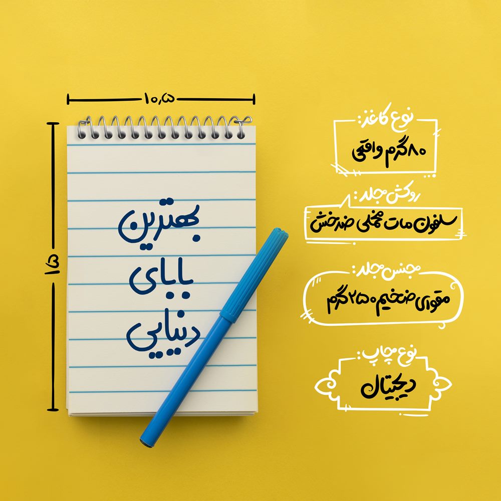 برند خندالو در زمینه تولید انواع دفاتر فانتزی و تحصیلی فعالیت میکند که به دلیل جذابیت ظاهری و طرح های متنوع طرفداران زیادی دارد. دفتر یادداشت خندالو طرح بهترین بابای دنیایی محصولی مناسب برای همه عاشقان لوازم التحریر است و همچنین همه کسانی که بنا به موقعیت تحصیل یا شغلشان با دفتر و نوشت افزار زیاد سر و کار دارند. در تولید دفتر یادداشت خندالو طرح بهترین بابای دنیایی از نوع صحافی فنر مارپیچ استفاده شده که در این نوع صحافی برگهها به راحتی چرخیده و یا بیرون آورده می شوند. دفتر های خندالو دارای جلد انعطاف پذیر از جنس مقوای گلاسه 250 گرم با روکش سلفون مات مخملی است که به شما امکان میدهد از دفتر خود بدون اینکه نگرانی از شکستن یا خراب شدن جلد را داشته باشید استفاده کنید و همچنین در این دفاتر از کاغذ 80 گرم با کیفیت استفاده شده که باعث میشود هنگام نوشتن به خوبی جوهر قلم بر روی صفحه نشسته و از خط خوردگیها جلوگیری کند. دفتر یادداشت خندالو با جنس و دوام مناسب، برگه های کاملاً سفید و خطوط طوسی دقیق را داراست که انسان را به نوشتن منظم و زیبا ترغیب میکند. طراحی کاملاً مناسب این دفاتر، به همراه کیفیت بالا، از آن یک محصول مورد علاقه و قابل اعتماد برای همه مقاطع تحصیلی میسازد. دفتر یادداشت خندالو طرح بهترین بابای دنیایی انتخابی هوشمندانه و مناسب برای افرادی است که به دنبال دفتری با کیفیت و کاربرد عالی هستند. این دفتر، همراه خوبی برای شما در تمام مراحل تحصیل و کار خواهد بود و تجربهای لذتبخش از نوشتن و آموختن را به شما هدیه میدهد.