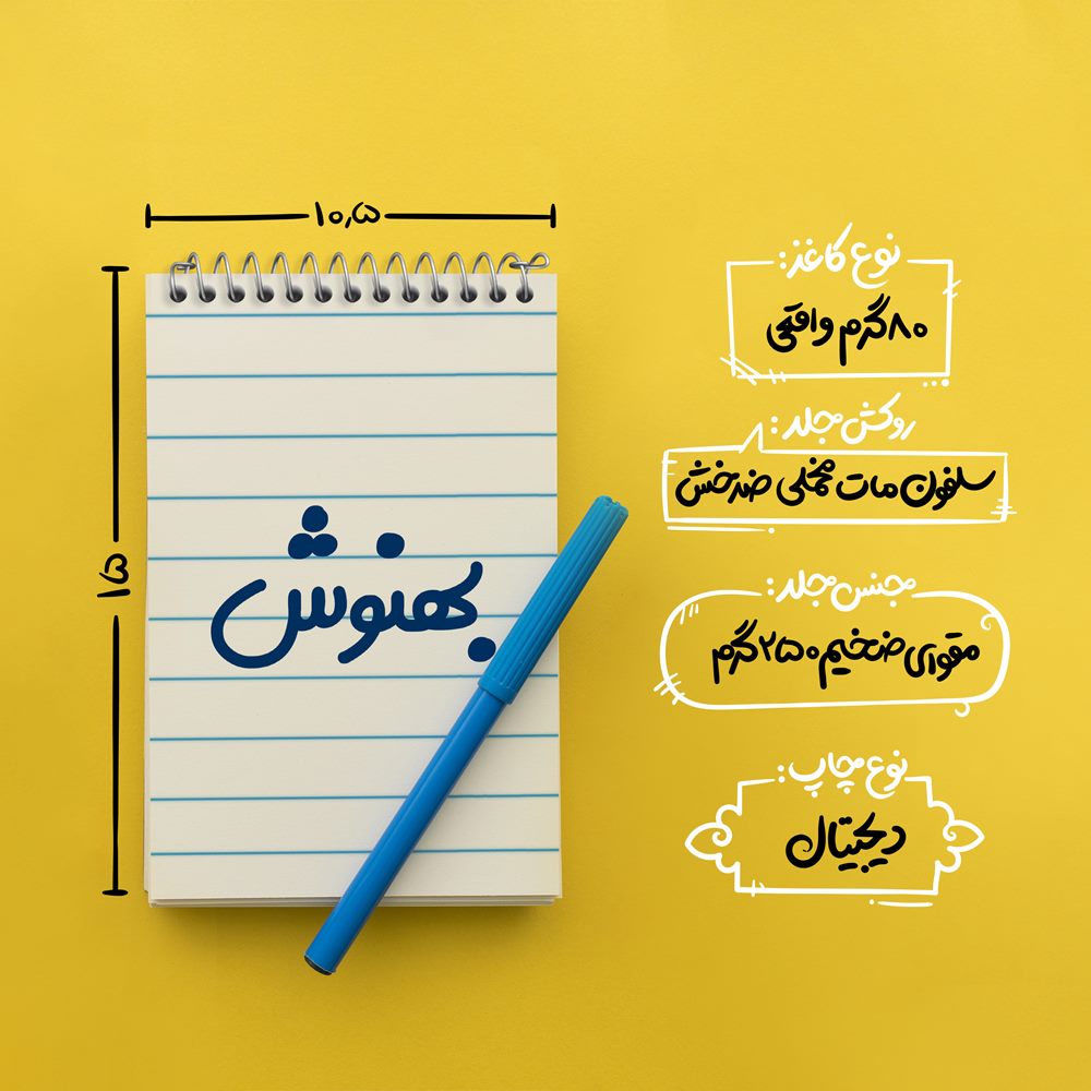 برند خندالو در زمینه تولید انواع دفاتر فانتزی و تحصیلی فعالیت میکند که به دلیل جذابیت ظاهری و طرح های متنوع طرفداران زیادی دارد. دفتر یادداشت خندالو طرح بهنوش محصولی مناسب برای همه عاشقان لوازم التحریر است و همچنین همه کسانی که بنا به موقعیت تحصیل یا شغلشان با دفتر و نوشت افزار زیاد سر و کار دارند. در تولید دفتر یادداشت خندالو طرح بهنوش از نوع صحافی فنر مارپیچ استفاده شده که در این نوع صحافی برگهها به راحتی چرخیده و یا بیرون آورده می شوند. دفتر های خندالو دارای جلد انعطاف پذیر از جنس مقوای گلاسه 250 گرم با روکش سلفون مات مخملی است که به شما امکان میدهد از دفتر خود بدون اینکه نگرانی از شکستن یا خراب شدن جلد را داشته باشید استفاده کنید و همچنین در این دفاتر از کاغذ 80 گرم با کیفیت استفاده شده که باعث میشود هنگام نوشتن به خوبی جوهر قلم بر روی صفحه نشسته و از خط خوردگیها جلوگیری کند. دفتر یادداشت خندالو با جنس و دوام مناسب، برگه های کاملاً سفید و خطوط طوسی دقیق را داراست که انسان را به نوشتن منظم و زیبا ترغیب میکند. طراحی کاملاً مناسب این دفاتر، به همراه کیفیت بالا، از آن یک محصول مورد علاقه و قابل اعتماد برای همه مقاطع تحصیلی میسازد. دفتر یادداشت خندالو طرح بهنوش انتخابی هوشمندانه و مناسب برای افرادی است که به دنبال دفتری با کیفیت و کاربرد عالی هستند. این دفتر، همراه خوبی برای شما در تمام مراحل تحصیل و کار خواهد بود و تجربهای لذتبخش از نوشتن و آموختن را به شما هدیه میدهد.