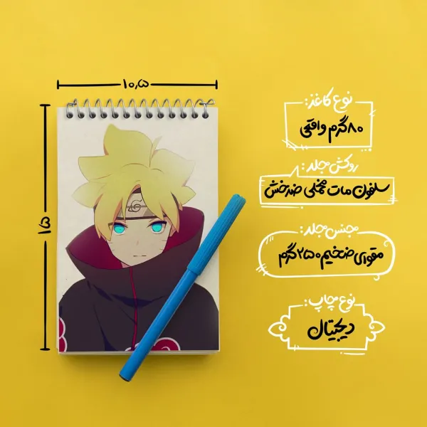 برند خندالو در زمینه تولید انواع دفاتر فانتزی و تحصیلی فعالیت میکند که به دلیل جذابیت ظاهری و طرح های متنوع طرفداران زیادی دارد. دفتر یادداشت خندالو طرح بوروتو اوزوماکی انیمه ناروتو Naruto محصولی مناسب برای همه عاشقان لوازم التحریر است و همچنین همه کسانی که بنا به موقعیت تحصیل یا شغلشان با دفتر و نوشت افزار زیاد سر و کار دارند. در تولید دفتر یادداشت خندالو طرح بوروتو اوزوماکی انیمه ناروتو Naruto از نوع صحافی فنر مارپیچ استفاده شده که در این نوع صحافی برگهها به راحتی چرخیده و یا بیرون آورده می شوند. دفتر های خندالو دارای جلد انعطاف پذیر از جنس مقوای گلاسه 250 گرم با روکش سلفون مات مخملی است که به شما امکان میدهد از دفتر خود بدون اینکه نگرانی از شکستن یا خراب شدن جلد را داشته باشید استفاده کنید و همچنین در این دفاتر از کاغذ 80 گرم با کیفیت استفاده شده که باعث میشود هنگام نوشتن به خوبی جوهر قلم بر روی صفحه نشسته و از خط خوردگیها جلوگیری کند. دفتر یادداشت خندالو با جنس و دوام مناسب، برگه های کاملاً سفید و خطوط طوسی دقیق را داراست که انسان را به نوشتن منظم و زیبا ترغیب میکند. طراحی کاملاً مناسب این دفاتر، به همراه کیفیت بالا، از آن یک محصول مورد علاقه و قابل اعتماد برای همه مقاطع تحصیلی میسازد. دفتر یادداشت خندالو طرح بوروتو اوزوماکی انیمه ناروتو Naruto انتخابی هوشمندانه و مناسب برای افرادی است که به دنبال دفتری با کیفیت و کاربرد عالی هستند. این دفتر، همراه خوبی برای شما در تمام مراحل تحصیل و کار خواهد بود و تجربهای لذتبخش از نوشتن و آموختن را به شما هدیه میدهد.