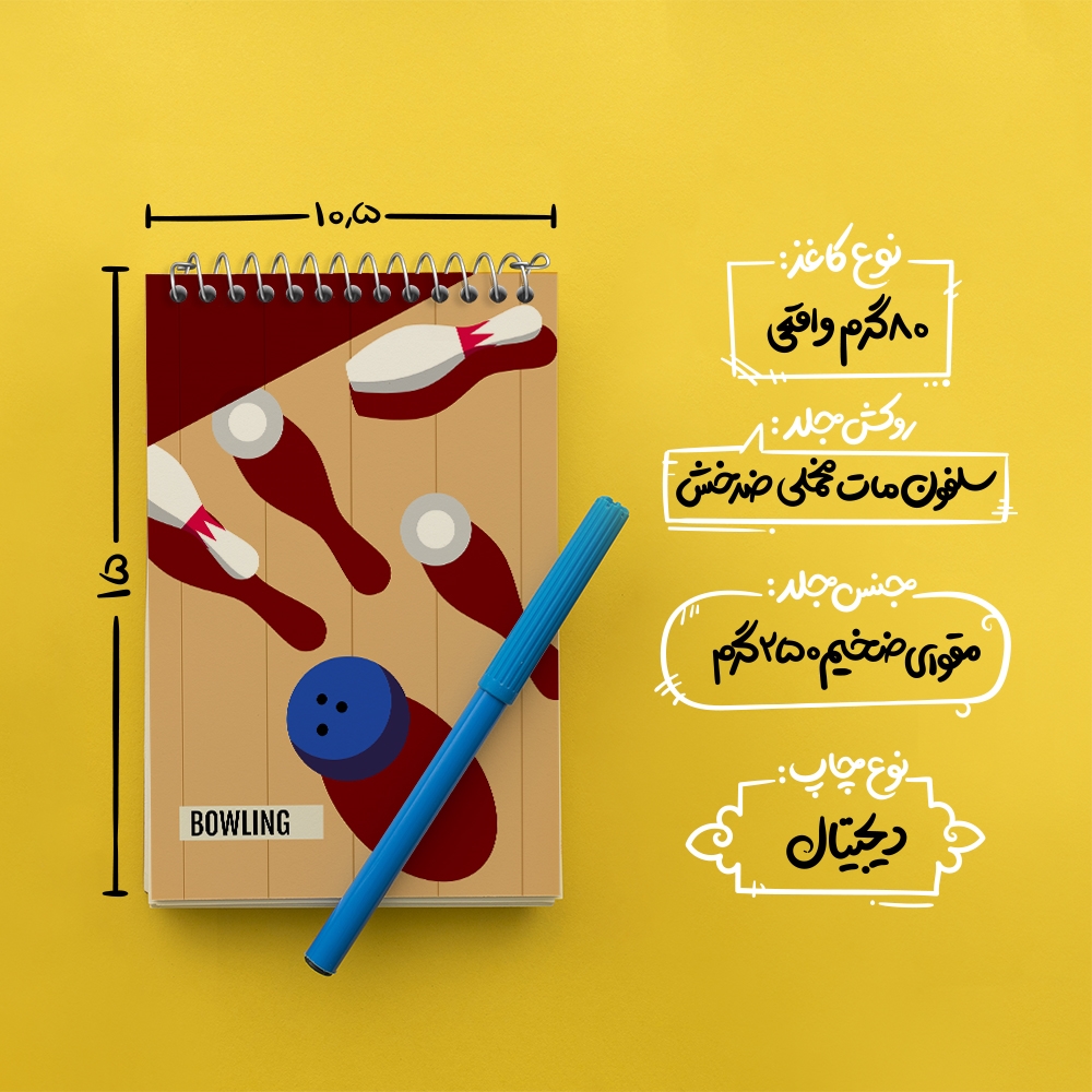 برند خندالو در زمینه تولید انواع دفاتر فانتزی و تحصیلی فعالیت میکند که به دلیل جذابیت ظاهری و طرح های متنوع طرفداران زیادی دارد. دفتر یادداشت خندالو طرح بولینگ محصولی مناسب برای همه عاشقان لوازم التحریر است و همچنین همه کسانی که بنا به موقعیت تحصیل یا شغلشان با دفتر و نوشت افزار زیاد سر و کار دارند. در تولید دفتر یادداشت خندالو طرح بولینگ از نوع صحافی فنر مارپیچ استفاده شده که در این نوع صحافی برگه‌ها به راحتی چرخیده و یا بیرون آورده می شوند.
