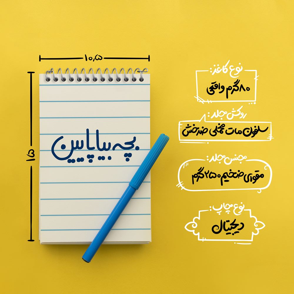 برند خندالو در زمینه تولید انواع دفاتر فانتزی و تحصیلی فعالیت میکند که به دلیل جذابیت ظاهری و طرح های متنوع طرفداران زیادی دارد. دفتر یادداشت خندالو طرح بچه بیا پایین محصولی مناسب برای همه عاشقان لوازم التحریر است و همچنین همه کسانی که بنا به موقعیت تحصیل یا شغلشان با دفتر و نوشت افزار زیاد سر و کار دارند. در تولید دفتر یادداشت خندالو طرح بچه بیا پایین از نوع صحافی فنر مارپیچ استفاده شده که در این نوع صحافی برگهها به راحتی چرخیده و یا بیرون آورده می شوند. دفتر های خندالو دارای جلد انعطاف پذیر از جنس مقوای گلاسه 250 گرم با روکش سلفون مات مخملی است که به شما امکان میدهد از دفتر خود بدون اینکه نگرانی از شکستن یا خراب شدن جلد را داشته باشید استفاده کنید و همچنین در این دفاتر از کاغذ 80 گرم با کیفیت استفاده شده که باعث میشود هنگام نوشتن به خوبی جوهر قلم بر روی صفحه نشسته و از خط خوردگیها جلوگیری کند. دفتر یادداشت خندالو با جنس و دوام مناسب، برگه های کاملاً سفید و خطوط طوسی دقیق را داراست که انسان را به نوشتن منظم و زیبا ترغیب میکند. طراحی کاملاً مناسب این دفاتر، به همراه کیفیت بالا، از آن یک محصول مورد علاقه و قابل اعتماد برای همه مقاطع تحصیلی میسازد. دفتر یادداشت خندالو طرح بچه بیا پایین انتخابی هوشمندانه و مناسب برای افرادی است که به دنبال دفتری با کیفیت و کاربرد عالی هستند. این دفتر، همراه خوبی برای شما در تمام مراحل تحصیل و کار خواهد بود و تجربهای لذتبخش از نوشتن و آموختن را به شما هدیه میدهد.