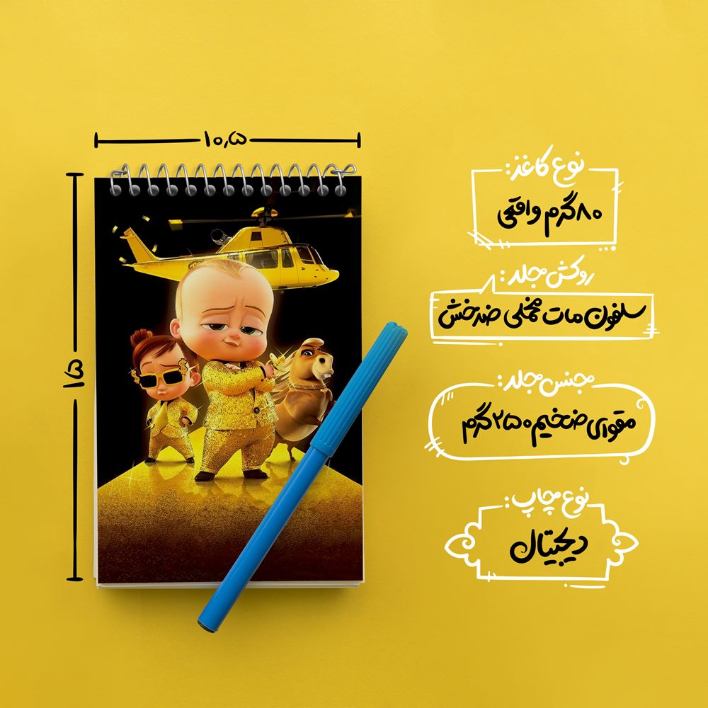 برند خندالو در زمینه تولید انواع دفاتر فانتزی و تحصیلی فعالیت میکند که به دلیل جذابیت ظاهری و طرح های متنوع طرفداران زیادی دارد. دفتر یادداشت خندالو طرح بچه رئیس Boss Baby محصولی مناسب برای همه عاشقان لوازم التحریر است و همچنین همه کسانی که بنا به موقعیت تحصیل یا شغلشان با دفتر و نوشت افزار زیاد سر و کار دارند. در تولید دفتر یادداشت خندالو طرح بچه رئیس Boss Baby از نوع صحافی فنر مارپیچ استفاده شده که در این نوع صحافی برگهها به راحتی چرخیده و یا بیرون آورده می شوند. دفتر های خندالو دارای جلد انعطاف پذیر از جنس مقوای گلاسه 250 گرم با روکش سلفون مات مخملی است که به شما امکان میدهد از دفتر خود بدون اینکه نگرانی از شکستن یا خراب شدن جلد را داشته باشید استفاده کنید و همچنین در این دفاتر از کاغذ 80 گرم با کیفیت استفاده شده که باعث میشود هنگام نوشتن به خوبی جوهر قلم بر روی صفحه نشسته و از خط خوردگیها جلوگیری کند. دفتر یادداشت خندالو با جنس و دوام مناسب، برگه های کاملاً سفید و خطوط طوسی دقیق را داراست که انسان را به نوشتن منظم و زیبا ترغیب میکند. طراحی کاملاً مناسب این دفاتر، به همراه کیفیت بالا، از آن یک محصول مورد علاقه و قابل اعتماد برای همه مقاطع تحصیلی میسازد. دفتر یادداشت خندالو طرح بچه رئیس Boss Baby انتخابی هوشمندانه و مناسب برای افرادی است که به دنبال دفتری با کیفیت و کاربرد عالی هستند. این دفتر، همراه خوبی برای شما در تمام مراحل تحصیل و کار خواهد بود و تجربهای لذتبخش از نوشتن و آموختن را به شما هدیه میدهد.
