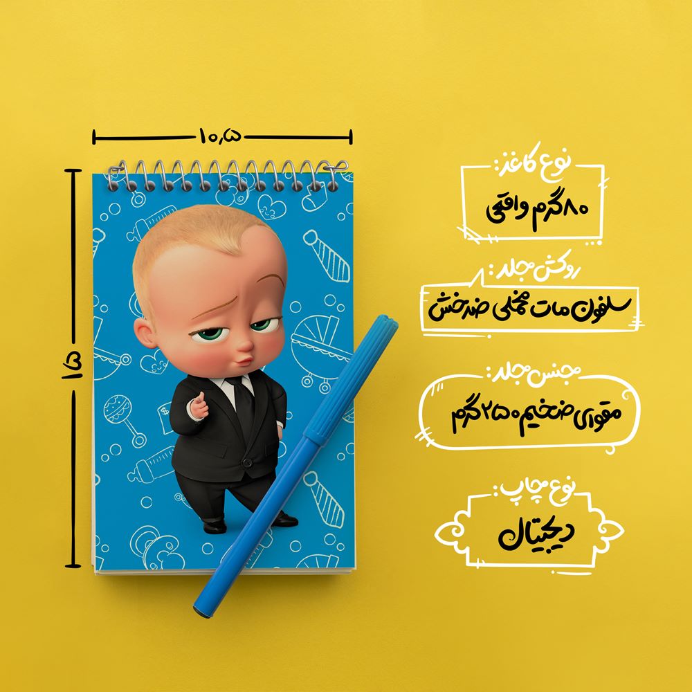برند خندالو در زمینه تولید انواع دفاتر فانتزی و تحصیلی فعالیت میکند که به دلیل جذابیت ظاهری و طرح های متنوع طرفداران زیادی دارد. دفتر یادداشت خندالو طرح بچه رئیس Boss Baby محصولی مناسب برای همه عاشقان لوازم التحریر است و همچنین همه کسانی که بنا به موقعیت تحصیل یا شغلشان با دفتر و نوشت افزار زیاد سر و کار دارند. در تولید دفتر یادداشت خندالو طرح بچه رئیس Boss Baby از نوع صحافی فنر مارپیچ استفاده شده که در این نوع صحافی برگهها به راحتی چرخیده و یا بیرون آورده می شوند. دفتر های خندالو دارای جلد انعطاف پذیر از جنس مقوای گلاسه 250 گرم با روکش سلفون مات مخملی است که به شما امکان میدهد از دفتر خود بدون اینکه نگرانی از شکستن یا خراب شدن جلد را داشته باشید استفاده کنید و همچنین در این دفاتر از کاغذ 80 گرم با کیفیت استفاده شده که باعث میشود هنگام نوشتن به خوبی جوهر قلم بر روی صفحه نشسته و از خط خوردگیها جلوگیری کند. دفتر یادداشت خندالو با جنس و دوام مناسب، برگه های کاملاً سفید و خطوط طوسی دقیق را داراست که انسان را به نوشتن منظم و زیبا ترغیب میکند. طراحی کاملاً مناسب این دفاتر، به همراه کیفیت بالا، از آن یک محصول مورد علاقه و قابل اعتماد برای همه مقاطع تحصیلی میسازد. دفتر یادداشت خندالو طرح بچه رئیس Boss Baby انتخابی هوشمندانه و مناسب برای افرادی است که به دنبال دفتری با کیفیت و کاربرد عالی هستند. این دفتر، همراه خوبی برای شما در تمام مراحل تحصیل و کار خواهد بود و تجربهای لذتبخش از نوشتن و آموختن را به شما هدیه میدهد.