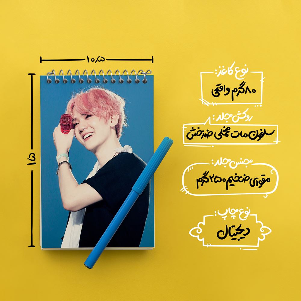 برند خندالو در زمینه تولید انواع دفاتر فانتزی و تحصیلی فعالیت میکند که به دلیل جذابیت ظاهری و طرح های متنوع طرفداران زیادی دارد. دفتر یادداشت خندالو طرح بکهیون گروه اکسو EXO محصولی مناسب برای همه عاشقان لوازم التحریر است و همچنین همه کسانی که بنا به موقعیت تحصیل یا شغلشان با دفتر و نوشت افزار زیاد سر و کار دارند. در تولید دفتر یادداشت خندالو طرح بکهیون گروه اکسو EXO از نوع صحافی فنر مارپیچ استفاده شده که در این نوع صحافی برگهها به راحتی چرخیده و یا بیرون آورده می شوند. دفتر های خندالو دارای جلد انعطاف پذیر از جنس مقوای گلاسه 250 گرم با روکش سلفون مات مخملی است که به شما امکان میدهد از دفتر خود بدون اینکه نگرانی از شکستن یا خراب شدن جلد را داشته باشید استفاده کنید و همچنین در این دفاتر از کاغذ 80 گرم با کیفیت استفاده شده که باعث میشود هنگام نوشتن به خوبی جوهر قلم بر روی صفحه نشسته و از خط خوردگیها جلوگیری کند. دفتر یادداشت خندالو با جنس و دوام مناسب، برگه های کاملاً سفید و خطوط طوسی دقیق را داراست که انسان را به نوشتن منظم و زیبا ترغیب میکند. طراحی کاملاً مناسب این دفاتر، به همراه کیفیت بالا، از آن یک محصول مورد علاقه و قابل اعتماد برای همه مقاطع تحصیلی میسازد. دفتر یادداشت خندالو طرح بکهیون گروه اکسو EXO انتخابی هوشمندانه و مناسب برای افرادی است که به دنبال دفتری با کیفیت و کاربرد عالی هستند. این دفتر، همراه خوبی برای شما در تمام مراحل تحصیل و کار خواهد بود و تجربهای لذتبخش از نوشتن و آموختن را به شما هدیه میدهد.