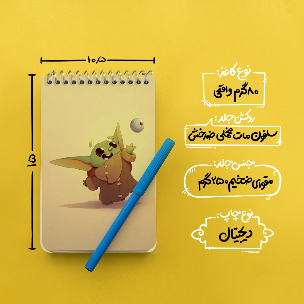 برند خندالو در زمینه تولید انواع دفاتر فانتزی و تحصیلی فعالیت میکند که به دلیل جذابیت ظاهری و طرح های متنوع طرفداران زیادی دارد. دفتر یادداشت خندالو طرح بیبی یودا محصولی مناسب برای همه عاشقان لوازم التحریر است و همچنین همه کسانی که بنا به موقعیت تحصیل یا شغلشان با دفتر و نوشت افزار زیاد سر و کار دارند. در تولید دفتر یادداشت خندالو طرح بیبی یودا از نوع صحافی فنر مارپیچ استفاده شده که در این نوع صحافی برگه‌ها به راحتی چرخیده و یا بیرون آورده می شوند.