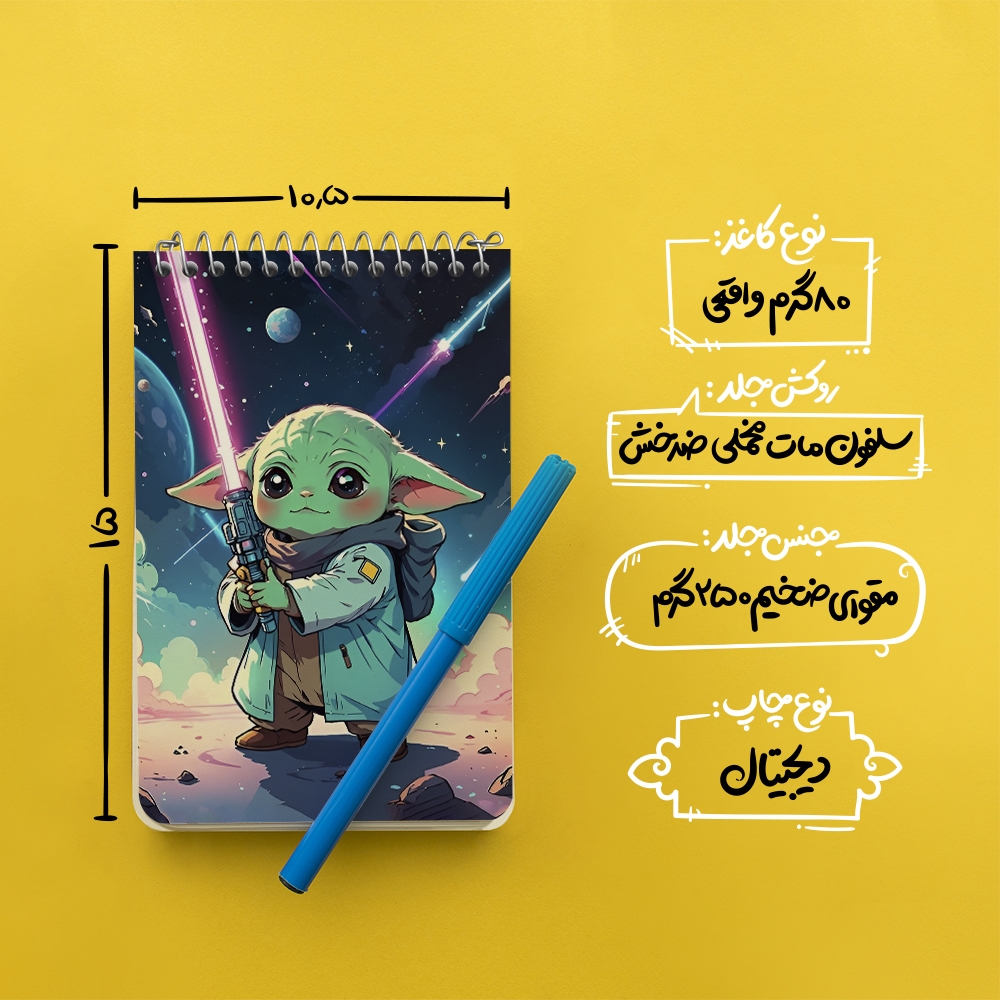برند خندالو در زمینه تولید انواع دفاتر فانتزی و تحصیلی فعالیت میکند که به دلیل جذابیت ظاهری و طرح های متنوع طرفداران زیادی دارد. دفتر یادداشت خندالو طرح بیبی یودا محصولی مناسب برای همه عاشقان لوازم التحریر است و همچنین همه کسانی که بنا به موقعیت تحصیل یا شغلشان با دفتر و نوشت افزار زیاد سر و کار دارند. در تولید دفتر یادداشت خندالو طرح بیبی یودا از نوع صحافی فنر مارپیچ استفاده شده که در این نوع صحافی برگه‌ها به راحتی چرخیده و یا بیرون آورده می شوند.