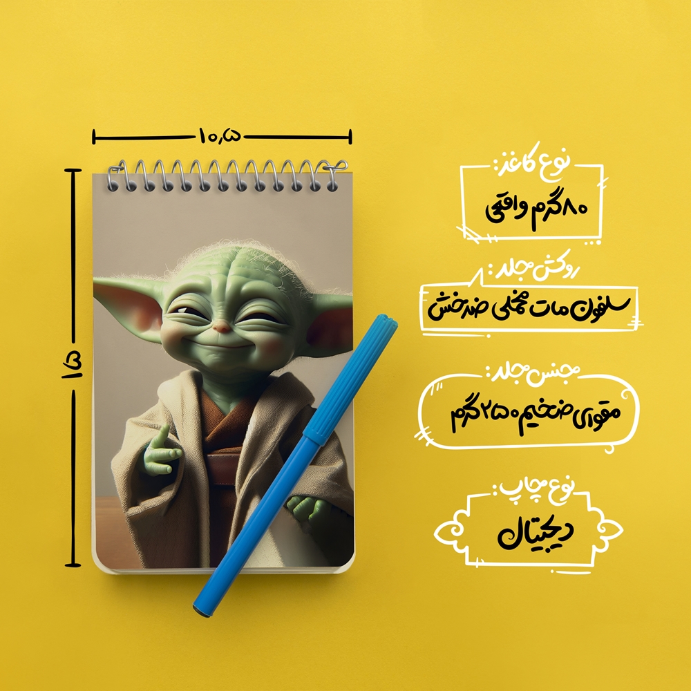 برند خندالو در زمینه تولید انواع دفاتر فانتزی و تحصیلی فعالیت میکند که به دلیل جذابیت ظاهری و طرح های متنوع طرفداران زیادی دارد. دفتر یادداشت خندالو طرح بیبی یودا محصولی مناسب برای همه عاشقان لوازم التحریر است و همچنین همه کسانی که بنا به موقعیت تحصیل یا شغلشان با دفتر و نوشت افزار زیاد سر و کار دارند. در تولید دفتر یادداشت خندالو طرح بیبی یودا از نوع صحافی فنر مارپیچ استفاده شده که در این نوع صحافی برگه‌ها به راحتی چرخیده و یا بیرون آورده می شوند.