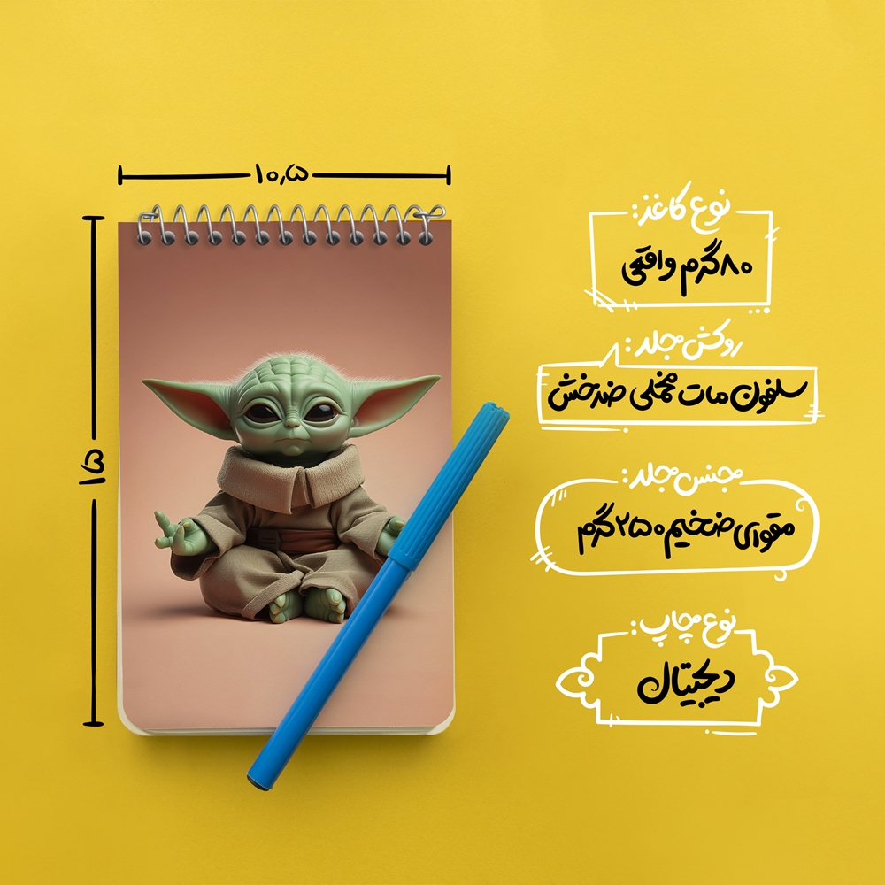 برند خندالو در زمینه تولید انواع دفاتر فانتزی و تحصیلی فعالیت میکند که به دلیل جذابیت ظاهری و طرح های متنوع طرفداران زیادی دارد. دفتر یادداشت خندالو طرح بیبی یودا محصولی مناسب برای همه عاشقان لوازم التحریر است و همچنین همه کسانی که بنا به موقعیت تحصیل یا شغلشان با دفتر و نوشت افزار زیاد سر و کار دارند. در تولید دفتر یادداشت خندالو طرح بیبی یودا از نوع صحافی فنر مارپیچ استفاده شده که در این نوع صحافی برگه‌ها به راحتی چرخیده و یا بیرون آورده می شوند.