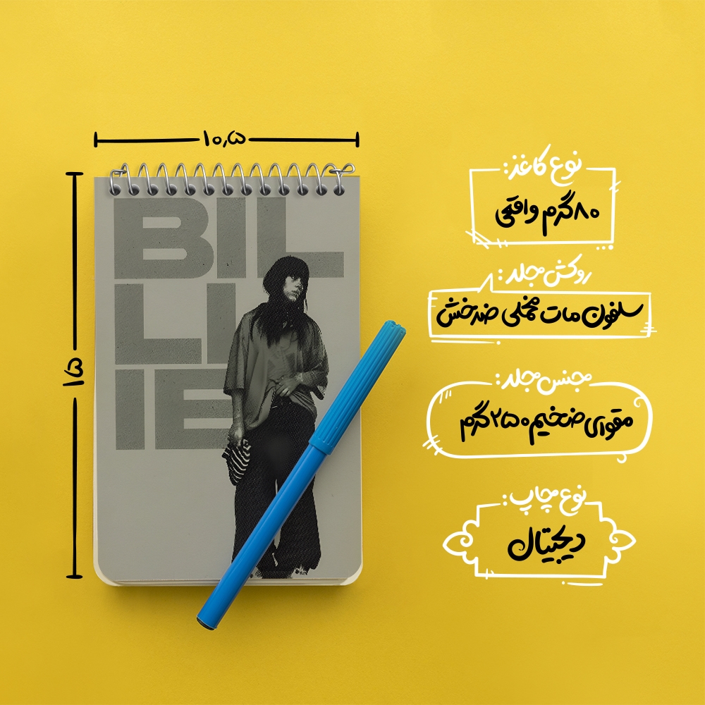 برند خندالو در زمینه تولید انواع دفاتر فانتزی و تحصیلی فعالیت میکند که به دلیل جذابیت ظاهری و طرح های متنوع طرفداران زیادی دارد. دفتر یادداشت خندالو طرح بیلی آیلیش (Billie Eilish) محصولی مناسب برای همه عاشقان لوازم التحریر است و همچنین همه کسانی که بنا به موقعیت تحصیل یا شغلشان با دفتر و نوشت افزار زیاد سر و کار دارند. در تولید دفتر یادداشت خندالو طرح بیلی آیلیش (Billie Eilish) از نوع صحافی فنر مارپیچ استفاده شده که در این نوع صحافی برگهها به راحتی چرخیده و یا بیرون آورده می شوند. دفتر های خندالو دارای جلد انعطاف پذیر از جنس مقوای گلاسه 250 گرم با روکش سلفون مات مخملی است که به شما امکان میدهد از دفتر خود بدون اینکه نگرانی از شکستن یا خراب شدن جلد را داشته باشید استفاده کنید و همچنین در این دفاتر از کاغذ 80 گرم با کیفیت استفاده شده که باعث میشود هنگام نوشتن به خوبی جوهر قلم بر روی صفحه نشسته و از خط خوردگیها جلوگیری کند. دفتر یادداشت خندالو با جنس و دوام مناسب، برگه های کاملاً سفید و خطوط طوسی دقیق را داراست که انسان را به نوشتن منظم و زیبا ترغیب میکند. طراحی کاملاً مناسب این دفاتر، به همراه کیفیت بالا، از آن یک محصول مورد علاقه و قابل اعتماد برای همه مقاطع تحصیلی میسازد. دفتر یادداشت خندالو طرح بیلی آیلیش (Billie Eilish) انتخابی هوشمندانه و مناسب برای افرادی است که به دنبال دفتری با کیفیت و کاربرد عالی هستند. این دفتر، همراه خوبی برای شما در تمام مراحل تحصیل و کار خواهد بود و تجربهای لذتبخش از نوشتن و آموختن را به شما هدیه میدهد.