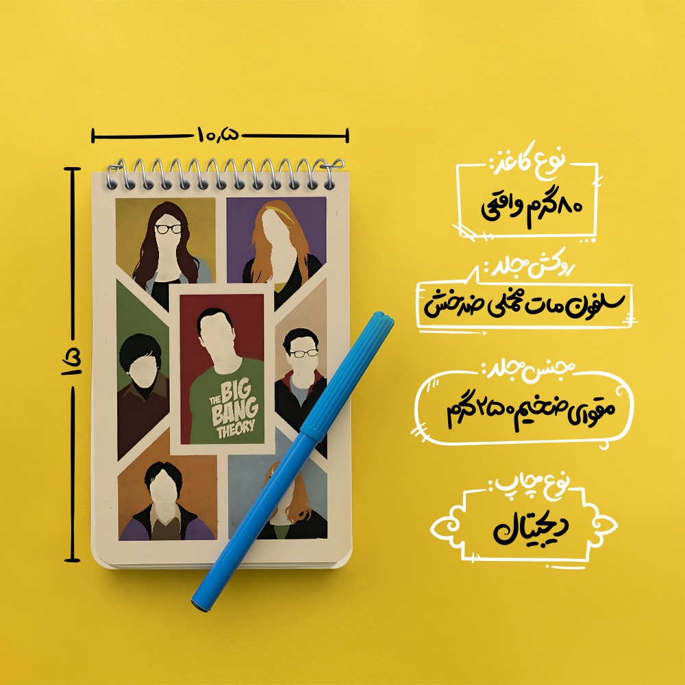 برند خندالو در زمینه تولید انواع دفاتر فانتزی و تحصیلی فعالیت میکند که به دلیل جذابیت ظاهری و طرح های متنوع طرفداران زیادی دارد. دفتر یادداشت خندالو طرح تئوری بیگ بنگ (The Big Bang Theory) محصولی مناسب برای همه عاشقان لوازم التحریر است و همچنین همه کسانی که بنا به موقعیت تحصیل یا شغلشان با دفتر و نوشت افزار زیاد سر و کار دارند. در تولید دفتر یادداشت خندالو طرح تئوری بیگ بنگ (The Big Bang Theory) از نوع صحافی فنر مارپیچ استفاده شده که در این نوع صحافی برگهها به راحتی چرخیده و یا بیرون آورده می شوند. دفتر های خندالو دارای جلد انعطاف پذیر از جنس مقوای گلاسه 250 گرم با روکش سلفون مات مخملی است که به شما امکان میدهد از دفتر خود بدون اینکه نگرانی از شکستن یا خراب شدن جلد را داشته باشید استفاده کنید و همچنین در این دفاتر از کاغذ 80 گرم با کیفیت استفاده شده که باعث میشود هنگام نوشتن به خوبی جوهر قلم بر روی صفحه نشسته و از خط خوردگیها جلوگیری کند. دفتر یادداشت خندالو با جنس و دوام مناسب، برگه های کاملاً سفید و خطوط طوسی دقیق را داراست که انسان را به نوشتن منظم و زیبا ترغیب میکند. طراحی کاملاً مناسب این دفاتر، به همراه کیفیت بالا، از آن یک محصول مورد علاقه و قابل اعتماد برای همه مقاطع تحصیلی میسازد. دفتر یادداشت خندالو طرح تئوری بیگ بنگ (The Big Bang Theory) انتخابی هوشمندانه و مناسب برای افرادی است که به دنبال دفتری با کیفیت و کاربرد عالی هستند. این دفتر، همراه خوبی برای شما در تمام مراحل تحصیل و کار خواهد بود و تجربهای لذتبخش از نوشتن و آموختن را به شما هدیه میدهد.