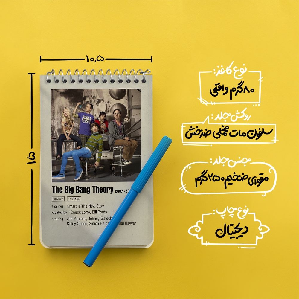 برند خندالو در زمینه تولید انواع دفاتر فانتزی و تحصیلی فعالیت میکند که به دلیل جذابیت ظاهری و طرح های متنوع طرفداران زیادی دارد. دفتر یادداشت خندالو طرح تئوری بیگ بنگ (The Big Bang Theory) محصولی مناسب برای همه عاشقان لوازم التحریر است و همچنین همه کسانی که بنا به موقعیت تحصیل یا شغلشان با دفتر و نوشت افزار زیاد سر و کار دارند. در تولید دفتر یادداشت خندالو طرح تئوری بیگ بنگ (The Big Bang Theory) از نوع صحافی فنر مارپیچ استفاده شده که در این نوع صحافی برگهها به راحتی چرخیده و یا بیرون آورده می شوند. دفتر های خندالو دارای جلد انعطاف پذیر از جنس مقوای گلاسه 250 گرم با روکش سلفون مات مخملی است که به شما امکان میدهد از دفتر خود بدون اینکه نگرانی از شکستن یا خراب شدن جلد را داشته باشید استفاده کنید و همچنین در این دفاتر از کاغذ 80 گرم با کیفیت استفاده شده که باعث میشود هنگام نوشتن به خوبی جوهر قلم بر روی صفحه نشسته و از خط خوردگیها جلوگیری کند. دفتر یادداشت خندالو با جنس و دوام مناسب، برگه های کاملاً سفید و خطوط طوسی دقیق را داراست که انسان را به نوشتن منظم و زیبا ترغیب میکند. طراحی کاملاً مناسب این دفاتر، به همراه کیفیت بالا، از آن یک محصول مورد علاقه و قابل اعتماد برای همه مقاطع تحصیلی میسازد. دفتر یادداشت خندالو طرح تئوری بیگ بنگ (The Big Bang Theory) انتخابی هوشمندانه و مناسب برای افرادی است که به دنبال دفتری با کیفیت و کاربرد عالی هستند. این دفتر، همراه خوبی برای شما در تمام مراحل تحصیل و کار خواهد بود و تجربهای لذتبخش از نوشتن و آموختن را به شما هدیه میدهد.