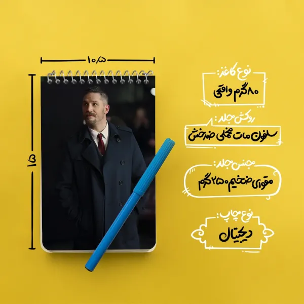 برند خندالو در زمینه تولید انواع دفاتر فانتزی و تحصیلی فعالیت میکند که به دلیل جذابیت ظاهری و طرح های متنوع طرفداران زیادی دارد. دفتر یادداشت خندالو طرح تام هاردی (Tom Hardy) محصولی مناسب برای همه عاشقان لوازم التحریر است و همچنین همه کسانی که بنا به موقعیت تحصیل یا شغلشان با دفتر و نوشت افزار زیاد سر و کار دارند. در تولید دفتر یادداشت خندالو طرح تام هاردی (Tom Hardy) از نوع صحافی فنر مارپیچ استفاده شده که در این نوع صحافی برگهها به راحتی چرخیده و یا بیرون آورده می شوند. دفتر های خندالو دارای جلد انعطاف پذیر از جنس مقوای گلاسه 250 گرم با روکش سلفون مات مخملی است که به شما امکان میدهد از دفتر خود بدون اینکه نگرانی از شکستن یا خراب شدن جلد را داشته باشید استفاده کنید و همچنین در این دفاتر از کاغذ 80 گرم با کیفیت استفاده شده که باعث میشود هنگام نوشتن به خوبی جوهر قلم بر روی صفحه نشسته و از خط خوردگیها جلوگیری کند. دفتر یادداشت خندالو با جنس و دوام مناسب، برگه های کاملاً سفید و خطوط طوسی دقیق را داراست که انسان را به نوشتن منظم و زیبا ترغیب میکند. طراحی کاملاً مناسب این دفاتر، به همراه کیفیت بالا، از آن یک محصول مورد علاقه و قابل اعتماد برای همه مقاطع تحصیلی میسازد. دفتر یادداشت خندالو طرح تام هاردی (Tom Hardy) انتخابی هوشمندانه و مناسب برای افرادی است که به دنبال دفتری با کیفیت و کاربرد عالی هستند. این دفتر، همراه خوبی برای شما در تمام مراحل تحصیل و کار خواهد بود و تجربهای لذتبخش از نوشتن و آموختن را به شما هدیه میدهد.