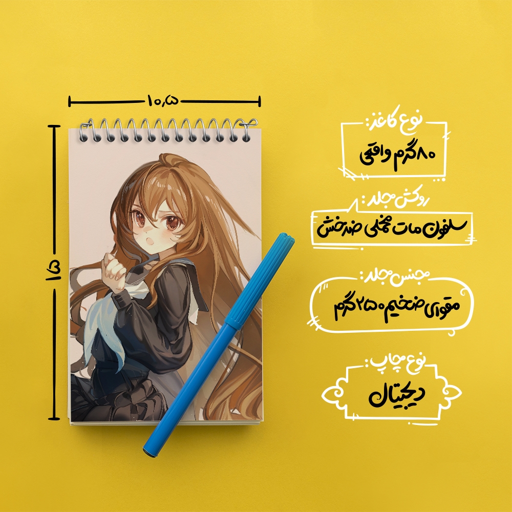 برند خندالو در زمینه تولید انواع دفاتر فانتزی و تحصیلی فعالیت میکند که به دلیل جذابیت ظاهری و طرح های متنوع طرفداران زیادی دارد. دفتر یادداشت خندالو طرح تایگا انیمه تورادورا محصولی مناسب برای همه عاشقان لوازم التحریر است و همچنین همه کسانی که بنا به موقعیت تحصیل یا شغلشان با دفتر و نوشت افزار زیاد سر و کار دارند. در تولید دفتر یادداشت خندالو طرح تایگا انیمه تورادورا از نوع صحافی فنر مارپیچ استفاده شده که در این نوع صحافی برگه‌ها به راحتی چرخیده و یا بیرون آورده می شوند.