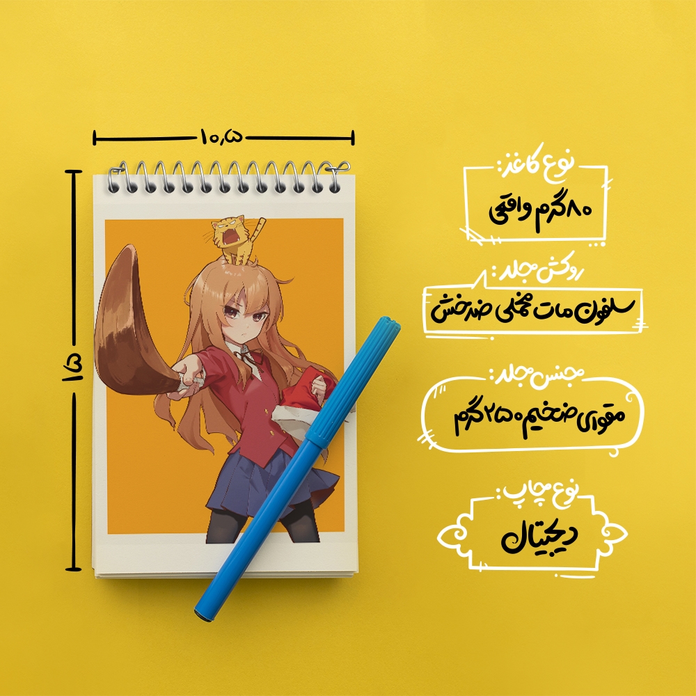 برند خندالو در زمینه تولید انواع دفاتر فانتزی و تحصیلی فعالیت میکند که به دلیل جذابیت ظاهری و طرح های متنوع طرفداران زیادی دارد. دفتر یادداشت خندالو طرح تایگا انیمه تورادورا محصولی مناسب برای همه عاشقان لوازم التحریر است و همچنین همه کسانی که بنا به موقعیت تحصیل یا شغلشان با دفتر و نوشت افزار زیاد سر و کار دارند. در تولید دفتر یادداشت خندالو طرح تایگا انیمه تورادورا از نوع صحافی فنر مارپیچ استفاده شده که در این نوع صحافی برگهها به راحتی چرخیده و یا بیرون آورده می شوند. دفتر های خندالو دارای جلد انعطاف پذیر از جنس مقوای گلاسه 250 گرم با روکش سلفون مات مخملی است که به شما امکان میدهد از دفتر خود بدون اینکه نگرانی از شکستن یا خراب شدن جلد را داشته باشید استفاده کنید و همچنین در این دفاتر از کاغذ 80 گرم با کیفیت استفاده شده که باعث میشود هنگام نوشتن به خوبی جوهر قلم بر روی صفحه نشسته و از خط خوردگیها جلوگیری کند. دفتر یادداشت خندالو با جنس و دوام مناسب، برگه های کاملاً سفید و خطوط طوسی دقیق را داراست که انسان را به نوشتن منظم و زیبا ترغیب میکند. طراحی کاملاً مناسب این دفاتر، به همراه کیفیت بالا، از آن یک محصول مورد علاقه و قابل اعتماد برای همه مقاطع تحصیلی میسازد. دفتر یادداشت خندالو طرح تایگا انیمه تورادورا انتخابی هوشمندانه و مناسب برای افرادی است که به دنبال دفتری با کیفیت و کاربرد عالی هستند. این دفتر، همراه خوبی برای شما در تمام مراحل تحصیل و کار خواهد بود و تجربهای لذتبخش از نوشتن و آموختن را به شما هدیه میدهد.