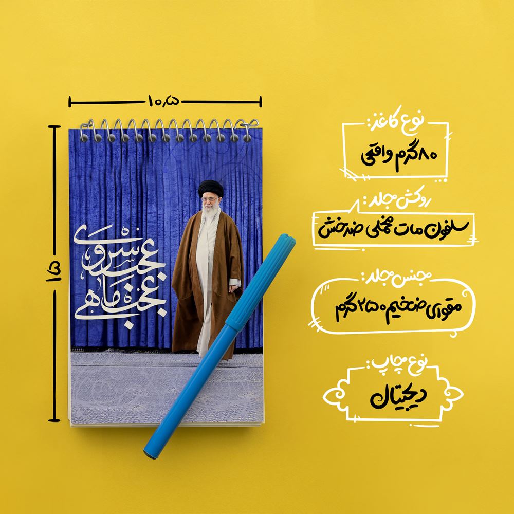 برند خندالو در زمینه تولید انواع دفاتر فانتزی و تحصیلی فعالیت میکند که به دلیل جذابیت ظاهری و طرح های متنوع طرفداران زیادی دارد. دفتر یادداشت خندالو طرح تصویر رهبر محصولی مناسب برای همه عاشقان لوازم التحریر است و همچنین همه کسانی که بنا به موقعیت تحصیل یا شغلشان با دفتر و نوشت افزار زیاد سر و کار دارند. در تولید دفتر یادداشت خندالو طرح تصویر رهبر از نوع صحافی فنر مارپیچ استفاده شده که در این نوع صحافی برگهها به راحتی چرخیده و یا بیرون آورده می شوند. دفتر های خندالو دارای جلد انعطاف پذیر از جنس مقوای گلاسه 250 گرم با روکش سلفون مات مخملی است که به شما امکان میدهد از دفتر خود بدون اینکه نگرانی از شکستن یا خراب شدن جلد را داشته باشید استفاده کنید و همچنین در این دفاتر از کاغذ 80 گرم با کیفیت استفاده شده که باعث میشود هنگام نوشتن به خوبی جوهر قلم بر روی صفحه نشسته و از خط خوردگیها جلوگیری کند. دفتر یادداشت خندالو با جنس و دوام مناسب، برگه های کاملاً سفید و خطوط طوسی دقیق را داراست که انسان را به نوشتن منظم و زیبا ترغیب میکند. طراحی کاملاً مناسب این دفاتر، به همراه کیفیت بالا، از آن یک محصول مورد علاقه و قابل اعتماد برای همه مقاطع تحصیلی میسازد. دفتر یادداشت خندالو طرح تصویر رهبر انتخابی هوشمندانه و مناسب برای افرادی است که به دنبال دفتری با کیفیت و کاربرد عالی هستند. این دفتر، همراه خوبی برای شما در تمام مراحل تحصیل و کار خواهد بود و تجربهای لذتبخش از نوشتن و آموختن را به شما هدیه میدهد.