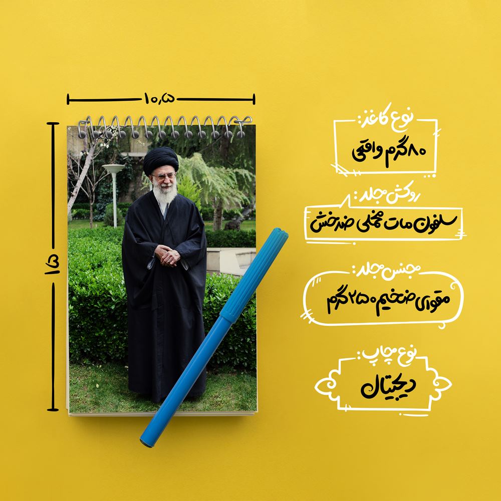 برند خندالو در زمینه تولید انواع دفاتر فانتزی و تحصیلی فعالیت میکند که به دلیل جذابیت ظاهری و طرح های متنوع طرفداران زیادی دارد. دفتر یادداشت خندالو طرح تصویر رهبر محصولی مناسب برای همه عاشقان لوازم التحریر است و همچنین همه کسانی که بنا به موقعیت تحصیل یا شغلشان با دفتر و نوشت افزار زیاد سر و کار دارند. در تولید دفتر یادداشت خندالو طرح تصویر رهبر از نوع صحافی فنر مارپیچ استفاده شده که در این نوع صحافی برگه‌ها به راحتی چرخیده و یا بیرون آورده می شوند.
