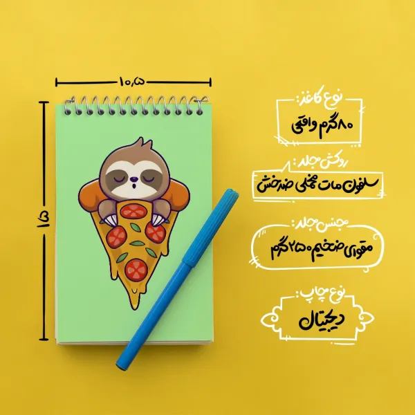 برند خندالو در زمینه تولید انواع دفاتر فانتزی و تحصیلی فعالیت میکند که به دلیل جذابیت ظاهری و طرح های متنوع طرفداران زیادی دارد. دفتر یادداشت خندالو طرح تنبل و پیتزا محصولی مناسب برای همه عاشقان لوازم التحریر است و همچنین همه کسانی که بنا به موقعیت تحصیل یا شغلشان با دفتر و نوشت افزار زیاد سر و کار دارند. در تولید دفتر یادداشت خندالو طرح تنبل و پیتزا از نوع صحافی فنر مارپیچ استفاده شده که در این نوع صحافی برگهها به راحتی چرخیده و یا بیرون آورده می شوند. دفتر های خندالو دارای جلد انعطاف پذیر از جنس مقوای گلاسه 250 گرم با روکش سلفون مات مخملی است که به شما امکان میدهد از دفتر خود بدون اینکه نگرانی از شکستن یا خراب شدن جلد را داشته باشید استفاده کنید و همچنین در این دفاتر از کاغذ 80 گرم با کیفیت استفاده شده که باعث میشود هنگام نوشتن به خوبی جوهر قلم بر روی صفحه نشسته و از خط خوردگیها جلوگیری کند. دفتر یادداشت خندالو با جنس و دوام مناسب، برگه های کاملاً سفید و خطوط طوسی دقیق را داراست که انسان را به نوشتن منظم و زیبا ترغیب میکند. طراحی کاملاً مناسب این دفاتر، به همراه کیفیت بالا، از آن یک محصول مورد علاقه و قابل اعتماد برای همه مقاطع تحصیلی میسازد. دفتر یادداشت خندالو طرح تنبل و پیتزا انتخابی هوشمندانه و مناسب برای افرادی است که به دنبال دفتری با کیفیت و کاربرد عالی هستند. این دفتر، همراه خوبی برای شما در تمام مراحل تحصیل و کار خواهد بود و تجربهای لذتبخش از نوشتن و آموختن را به شما هدیه میدهد.