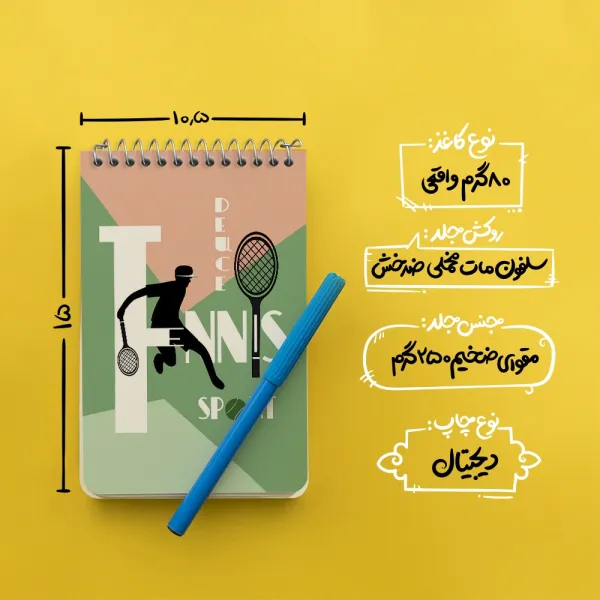 برند خندالو در زمینه تولید انواع دفاتر فانتزی و تحصیلی فعالیت میکند که به دلیل جذابیت ظاهری و طرح های متنوع طرفداران زیادی دارد. دفتر یادداشت خندالو طرح تنیس (Tennis) محصولی مناسب برای همه عاشقان لوازم التحریر است و همچنین همه کسانی که بنا به موقعیت تحصیل یا شغلشان با دفتر و نوشت افزار زیاد سر و کار دارند. در تولید دفتر یادداشت خندالو طرح تنیس (Tennis) از نوع صحافی فنر مارپیچ استفاده شده که در این نوع صحافی برگه‌ها به راحتی چرخیده و یا بیرون آورده می شوند.
