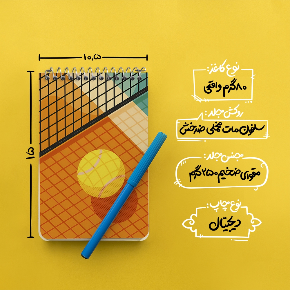 برند خندالو در زمینه تولید انواع دفاتر فانتزی و تحصیلی فعالیت میکند که به دلیل جذابیت ظاهری و طرح های متنوع طرفداران زیادی دارد. دفتر یادداشت خندالو طرح تنیس (Tennis) محصولی مناسب برای همه عاشقان لوازم التحریر است و همچنین همه کسانی که بنا به موقعیت تحصیل یا شغلشان با دفتر و نوشت افزار زیاد سر و کار دارند. در تولید دفتر یادداشت خندالو طرح تنیس (Tennis) از نوع صحافی فنر مارپیچ استفاده شده که در این نوع صحافی برگه‌ها به راحتی چرخیده و یا بیرون آورده می شوند.