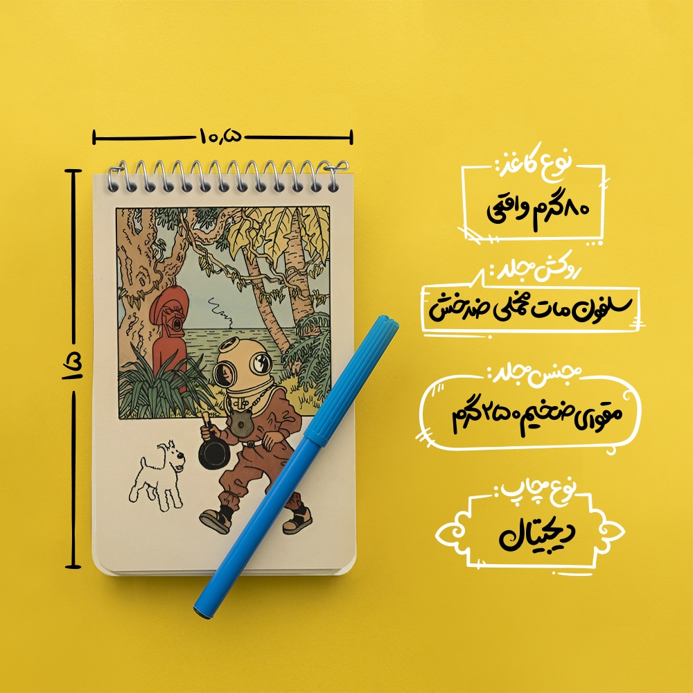 برند خندالو در زمینه تولید انواع دفاتر فانتزی و تحصیلی فعالیت میکند که به دلیل جذابیت ظاهری و طرح های متنوع طرفداران زیادی دارد. دفتر یادداشت خندالو طرح تن تن (Tintin) محصولی مناسب برای همه عاشقان لوازم التحریر است و همچنین همه کسانی که بنا به موقعیت تحصیل یا شغلشان با دفتر و نوشت افزار زیاد سر و کار دارند. در تولید دفتر یادداشت خندالو طرح تن تن (Tintin) از نوع صحافی فنر مارپیچ استفاده شده که در این نوع صحافی برگه‌ها به راحتی چرخیده و یا بیرون آورده می شوند.