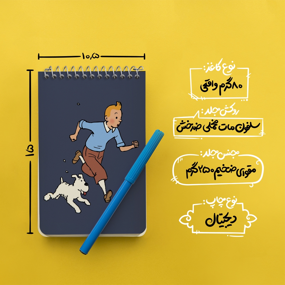 برند خندالو در زمینه تولید انواع دفاتر فانتزی و تحصیلی فعالیت میکند که به دلیل جذابیت ظاهری و طرح های متنوع طرفداران زیادی دارد. دفتر یادداشت خندالو طرح تن تن (Tintin) محصولی مناسب برای همه عاشقان لوازم التحریر است و همچنین همه کسانی که بنا به موقعیت تحصیل یا شغلشان با دفتر و نوشت افزار زیاد سر و کار دارند. در تولید دفتر یادداشت خندالو طرح تن تن (Tintin) از نوع صحافی فنر مارپیچ استفاده شده که در این نوع صحافی برگهها به راحتی چرخیده و یا بیرون آورده می شوند. دفتر های خندالو دارای جلد انعطاف پذیر از جنس مقوای گلاسه 250 گرم با روکش سلفون مات مخملی است که به شما امکان میدهد از دفتر خود بدون اینکه نگرانی از شکستن یا خراب شدن جلد را داشته باشید استفاده کنید و همچنین در این دفاتر از کاغذ 80 گرم با کیفیت استفاده شده که باعث میشود هنگام نوشتن به خوبی جوهر قلم بر روی صفحه نشسته و از خط خوردگیها جلوگیری کند. دفتر یادداشت خندالو با جنس و دوام مناسب، برگه های کاملاً سفید و خطوط طوسی دقیق را داراست که انسان را به نوشتن منظم و زیبا ترغیب میکند. طراحی کاملاً مناسب این دفاتر، به همراه کیفیت بالا، از آن یک محصول مورد علاقه و قابل اعتماد برای همه مقاطع تحصیلی میسازد. دفتر یادداشت خندالو طرح تن تن (Tintin) انتخابی هوشمندانه و مناسب برای افرادی است که به دنبال دفتری با کیفیت و کاربرد عالی هستند. این دفتر، همراه خوبی برای شما در تمام مراحل تحصیل و کار خواهد بود و تجربهای لذتبخش از نوشتن و آموختن را به شما هدیه میدهد.