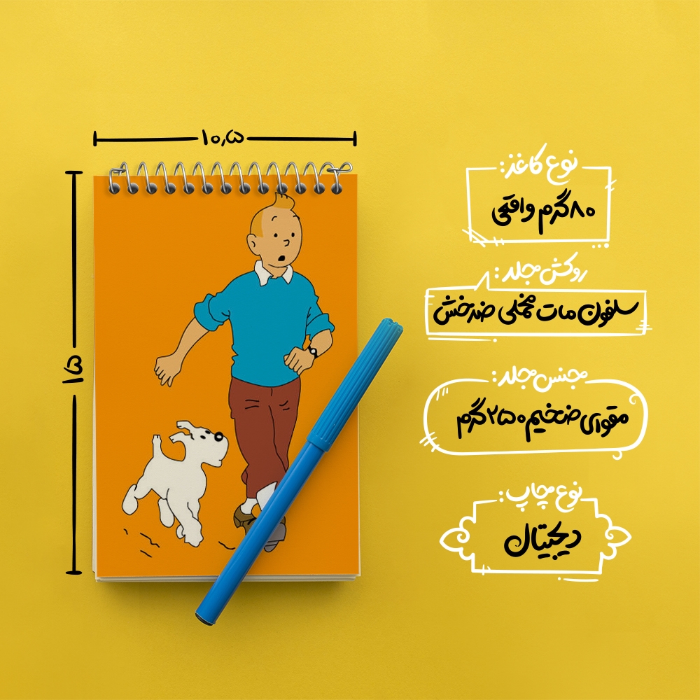 برند خندالو در زمینه تولید انواع دفاتر فانتزی و تحصیلی فعالیت میکند که به دلیل جذابیت ظاهری و طرح های متنوع طرفداران زیادی دارد. دفتر یادداشت خندالو طرح تن تن (Tintin) محصولی مناسب برای همه عاشقان لوازم التحریر است و همچنین همه کسانی که بنا به موقعیت تحصیل یا شغلشان با دفتر و نوشت افزار زیاد سر و کار دارند. در تولید دفتر یادداشت خندالو طرح تن تن (Tintin) از نوع صحافی فنر مارپیچ استفاده شده که در این نوع صحافی برگه‌ها به راحتی چرخیده و یا بیرون آورده می شوند.