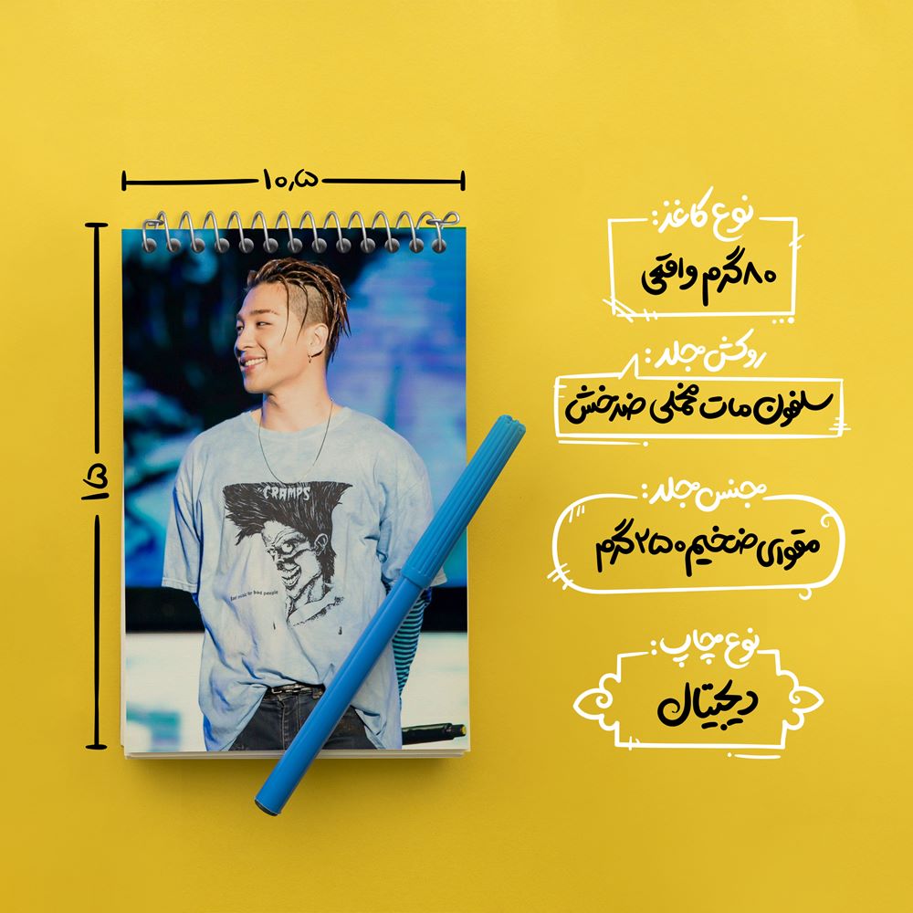 برند خندالو در زمینه تولید انواع دفاتر فانتزی و تحصیلی فعالیت میکند که به دلیل جذابیت ظاهری و طرح های متنوع طرفداران زیادی دارد. دفتر یادداشت خندالو طرح ته یانگ گروه بیگ بنگ BIGBANG محصولی مناسب برای همه عاشقان لوازم التحریر است و همچنین همه کسانی که بنا به موقعیت تحصیل یا شغلشان با دفتر و نوشت افزار زیاد سر و کار دارند. در تولید دفتر یادداشت خندالو طرح ته یانگ گروه بیگ بنگ BIGBANG از نوع صحافی فنر مارپیچ استفاده شده که در این نوع صحافی برگهها به راحتی چرخیده و یا بیرون آورده می شوند. دفتر های خندالو دارای جلد انعطاف پذیر از جنس مقوای گلاسه 250 گرم با روکش سلفون مات مخملی است که به شما امکان میدهد از دفتر خود بدون اینکه نگرانی از شکستن یا خراب شدن جلد را داشته باشید استفاده کنید و همچنین در این دفاتر از کاغذ 80 گرم با کیفیت استفاده شده که باعث میشود هنگام نوشتن به خوبی جوهر قلم بر روی صفحه نشسته و از خط خوردگیها جلوگیری کند. دفتر یادداشت خندالو با جنس و دوام مناسب، برگه های کاملاً سفید و خطوط طوسی دقیق را داراست که انسان را به نوشتن منظم و زیبا ترغیب میکند. طراحی کاملاً مناسب این دفاتر، به همراه کیفیت بالا، از آن یک محصول مورد علاقه و قابل اعتماد برای همه مقاطع تحصیلی میسازد. دفتر یادداشت خندالو طرح ته یانگ گروه بیگ بنگ BIGBANG انتخابی هوشمندانه و مناسب برای افرادی است که به دنبال دفتری با کیفیت و کاربرد عالی هستند. این دفتر، همراه خوبی برای شما در تمام مراحل تحصیل و کار خواهد بود و تجربهای لذتبخش از نوشتن و آموختن را به شما هدیه میدهد.