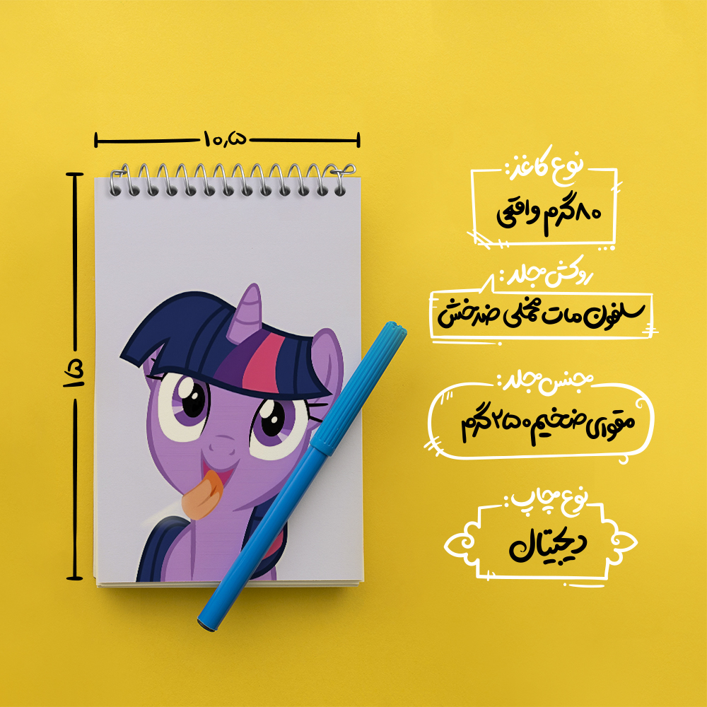برند خندالو در زمینه تولید انواع دفاتر فانتزی و تحصیلی فعالیت میکند که به دلیل جذابیت ظاهری و طرح های متنوع طرفداران زیادی دارد. دفتر یادداشت خندالو طرح توایلایت اسپارکل پونی محصولی مناسب برای همه عاشقان لوازم التحریر است و همچنین همه کسانی که بنا به موقعیت تحصیل یا شغلشان با دفتر و نوشت افزار زیاد سر و کار دارند. در تولید دفتر یادداشت خندالو طرح توایلایت اسپارکل پونی از نوع صحافی فنر مارپیچ استفاده شده که در این نوع صحافی برگهها به راحتی چرخیده و یا بیرون آورده می شوند. دفتر های خندالو دارای جلد انعطاف پذیر از جنس مقوای گلاسه 250 گرم با روکش سلفون مات مخملی است که به شما امکان میدهد از دفتر خود بدون اینکه نگرانی از شکستن یا خراب شدن جلد را داشته باشید استفاده کنید و همچنین در این دفاتر از کاغذ 80 گرم با کیفیت استفاده شده که باعث میشود هنگام نوشتن به خوبی جوهر قلم بر روی صفحه نشسته و از خط خوردگیها جلوگیری کند. دفتر یادداشت خندالو با جنس و دوام مناسب، برگه های کاملاً سفید و خطوط طوسی دقیق را داراست که انسان را به نوشتن منظم و زیبا ترغیب میکند. طراحی کاملاً مناسب این دفاتر، به همراه کیفیت بالا، از آن یک محصول مورد علاقه و قابل اعتماد برای همه مقاطع تحصیلی میسازد. دفتر یادداشت خندالو طرح توایلایت اسپارکل پونی انتخابی هوشمندانه و مناسب برای افرادی است که به دنبال دفتری با کیفیت و کاربرد عالی هستند. این دفتر، همراه خوبی برای شما در تمام مراحل تحصیل و کار خواهد بود و تجربهای لذتبخش از نوشتن و آموختن را به شما هدیه میدهد.