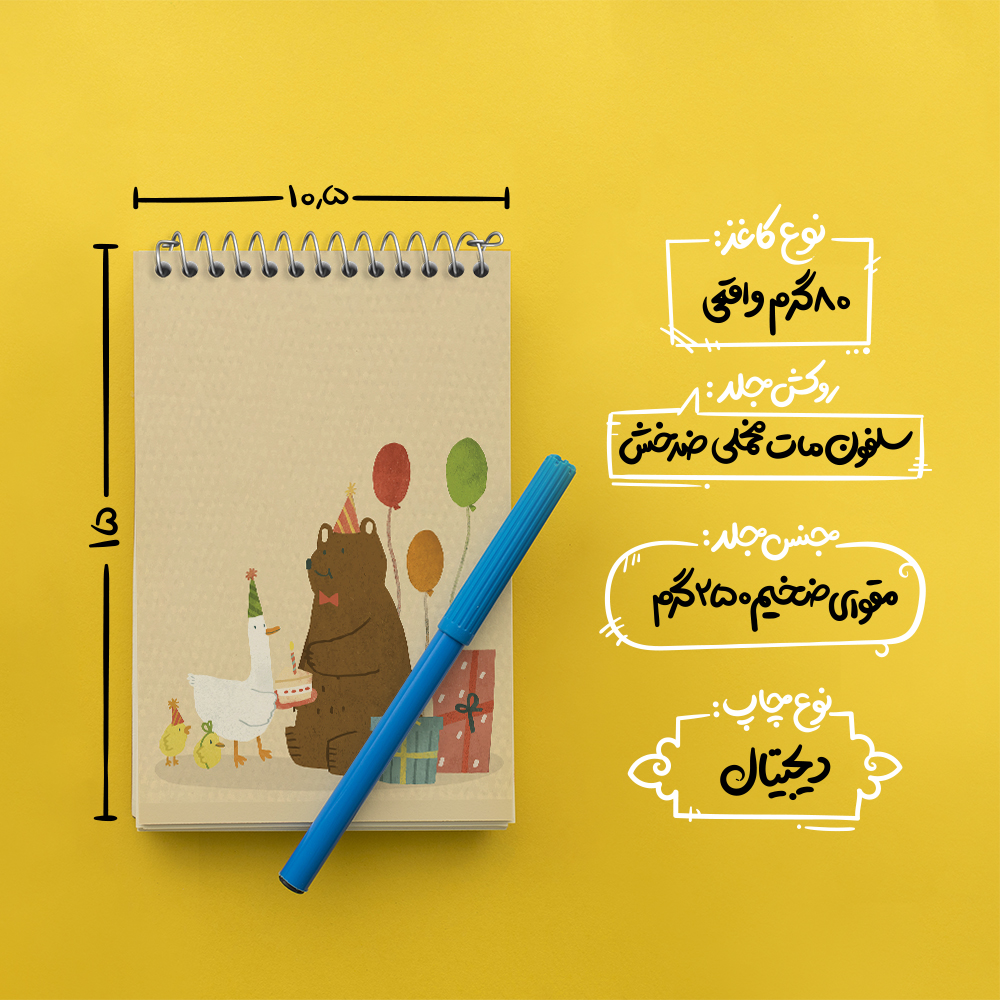 برند خندالو در زمینه تولید انواع دفاتر فانتزی و تحصیلی فعالیت میکند که به دلیل جذابیت ظاهری و طرح های متنوع طرفداران زیادی دارد. دفتر یادداشت خندالو طرح تولدت مبارک محصولی مناسب برای همه عاشقان لوازم التحریر است و همچنین همه کسانی که بنا به موقعیت تحصیل یا شغلشان با دفتر و نوشت افزار زیاد سر و کار دارند. در تولید دفتر یادداشت خندالو طرح تولدت مبارک از نوع صحافی فنر مارپیچ استفاده شده که در این نوع صحافی برگه‌ها به راحتی چرخیده و یا بیرون آورده می شوند.