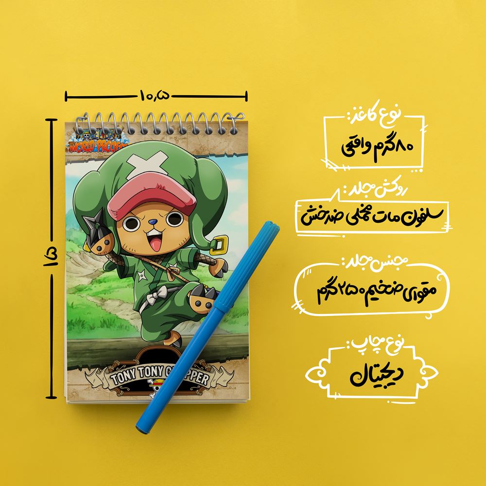 برند خندالو در زمینه تولید انواع دفاتر فانتزی و تحصیلی فعالیت میکند که به دلیل جذابیت ظاهری و طرح های متنوع طرفداران زیادی دارد. دفتر یادداشت خندالو طرح تونی تونی چاپر انیمه وان پیس One Piece محصولی مناسب برای همه عاشقان لوازم التحریر است و همچنین همه کسانی که بنا به موقعیت تحصیل یا شغلشان با دفتر و نوشت افزار زیاد سر و کار دارند. در تولید دفتر یادداشت خندالو طرح تونی تونی چاپر انیمه وان پیس One Piece از نوع صحافی فنر مارپیچ استفاده شده که در این نوع صحافی برگهها به راحتی چرخیده و یا بیرون آورده می شوند. دفتر های خندالو دارای جلد انعطاف پذیر از جنس مقوای گلاسه 250 گرم با روکش سلفون مات مخملی است که به شما امکان میدهد از دفتر خود بدون اینکه نگرانی از شکستن یا خراب شدن جلد را داشته باشید استفاده کنید و همچنین در این دفاتر از کاغذ 80 گرم با کیفیت استفاده شده که باعث میشود هنگام نوشتن به خوبی جوهر قلم بر روی صفحه نشسته و از خط خوردگیها جلوگیری کند. دفتر یادداشت خندالو با جنس و دوام مناسب، برگه های کاملاً سفید و خطوط طوسی دقیق را داراست که انسان را به نوشتن منظم و زیبا ترغیب میکند. طراحی کاملاً مناسب این دفاتر، به همراه کیفیت بالا، از آن یک محصول مورد علاقه و قابل اعتماد برای همه مقاطع تحصیلی میسازد. دفتر یادداشت خندالو طرح تونی تونی چاپر انیمه وان پیس One Piece انتخابی هوشمندانه و مناسب برای افرادی است که به دنبال دفتری با کیفیت و کاربرد عالی هستند. این دفتر، همراه خوبی برای شما در تمام مراحل تحصیل و کار خواهد بود و تجربهای لذتبخش از نوشتن و آموختن را به شما هدیه میدهد.