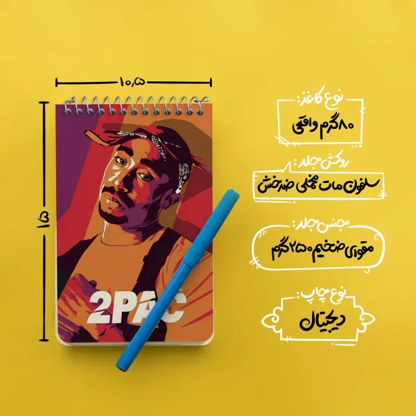 برند خندالو در زمینه تولید انواع دفاتر فانتزی و تحصیلی فعالیت میکند که به دلیل جذابیت ظاهری و طرح های متنوع طرفداران زیادی دارد. دفتر یادداشت خندالو طرح توپاک (Tupac) محصولی مناسب برای همه عاشقان لوازم التحریر است و همچنین همه کسانی که بنا به موقعیت تحصیل یا شغلشان با دفتر و نوشت افزار زیاد سر و کار دارند. در تولید دفتر یادداشت خندالو طرح توپاک (Tupac) از نوع صحافی فنر مارپیچ استفاده شده که در این نوع صحافی برگه‌ها به راحتی چرخیده و یا بیرون آورده می شوند.