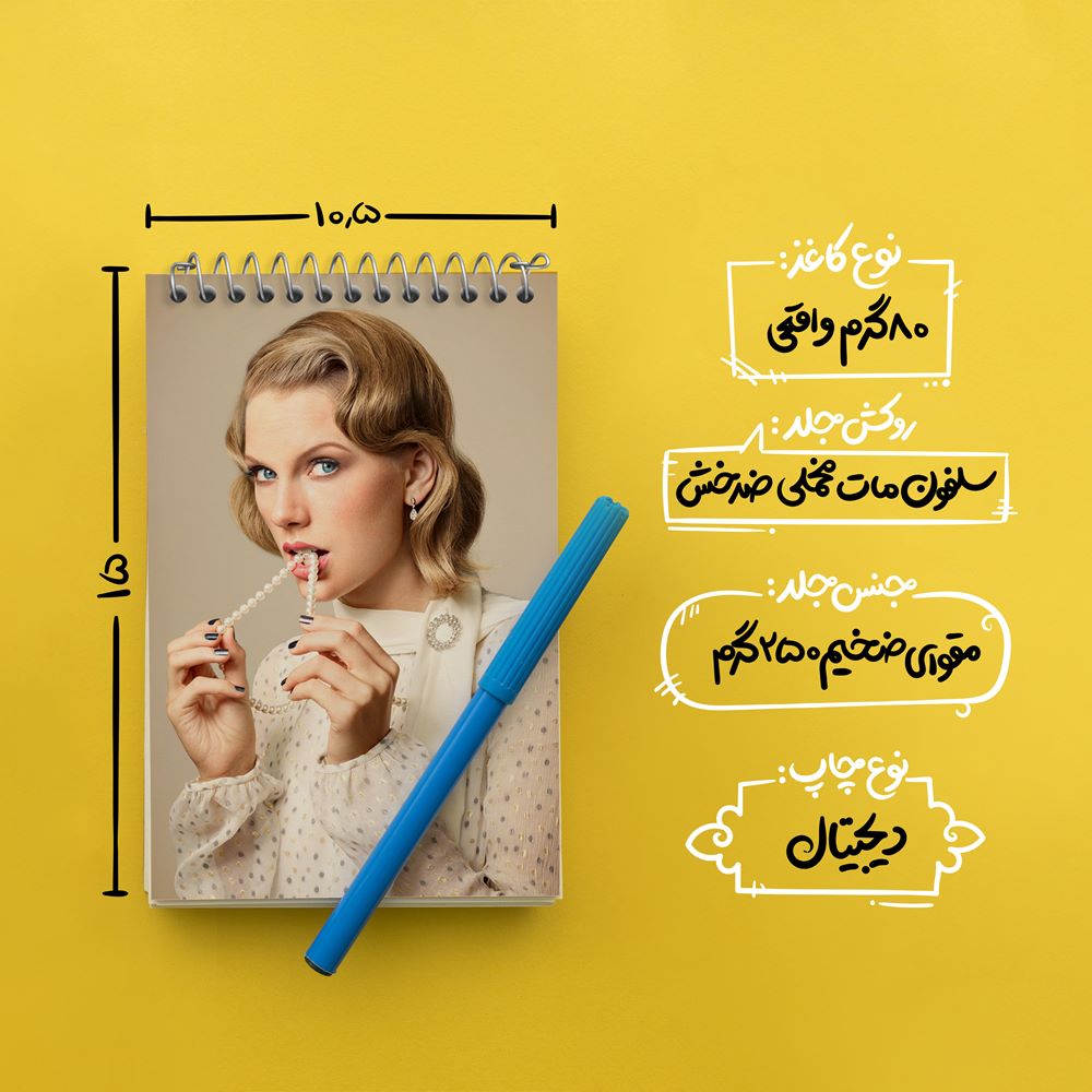برند خندالو در زمینه تولید انواع دفاتر فانتزی و تحصیلی فعالیت میکند که به دلیل جذابیت ظاهری و طرح های متنوع طرفداران زیادی دارد. دفتر یادداشت خندالو طرح تیلور سوئیفت Taylor Swift محصولی مناسب برای همه عاشقان لوازم التحریر است و همچنین همه کسانی که بنا به موقعیت تحصیل یا شغلشان با دفتر و نوشت افزار زیاد سر و کار دارند. در تولید دفتر یادداشت خندالو طرح تیلور سوئیفت Taylor Swift از نوع صحافی فنر مارپیچ استفاده شده که در این نوع صحافی برگهها به راحتی چرخیده و یا بیرون آورده می شوند. دفتر های خندالو دارای جلد انعطاف پذیر از جنس مقوای گلاسه 250 گرم با روکش سلفون مات مخملی است که به شما امکان میدهد از دفتر خود بدون اینکه نگرانی از شکستن یا خراب شدن جلد را داشته باشید استفاده کنید و همچنین در این دفاتر از کاغذ 80 گرم با کیفیت استفاده شده که باعث میشود هنگام نوشتن به خوبی جوهر قلم بر روی صفحه نشسته و از خط خوردگیها جلوگیری کند. دفتر یادداشت خندالو با جنس و دوام مناسب، برگه های کاملاً سفید و خطوط طوسی دقیق را داراست که انسان را به نوشتن منظم و زیبا ترغیب میکند. طراحی کاملاً مناسب این دفاتر، به همراه کیفیت بالا، از آن یک محصول مورد علاقه و قابل اعتماد برای همه مقاطع تحصیلی میسازد. دفتر یادداشت خندالو طرح تیلور سوئیفت Taylor Swift انتخابی هوشمندانه و مناسب برای افرادی است که به دنبال دفتری با کیفیت و کاربرد عالی هستند. این دفتر، همراه خوبی برای شما در تمام مراحل تحصیل و کار خواهد بود و تجربهای لذتبخش از نوشتن و آموختن را به شما هدیه میدهد.