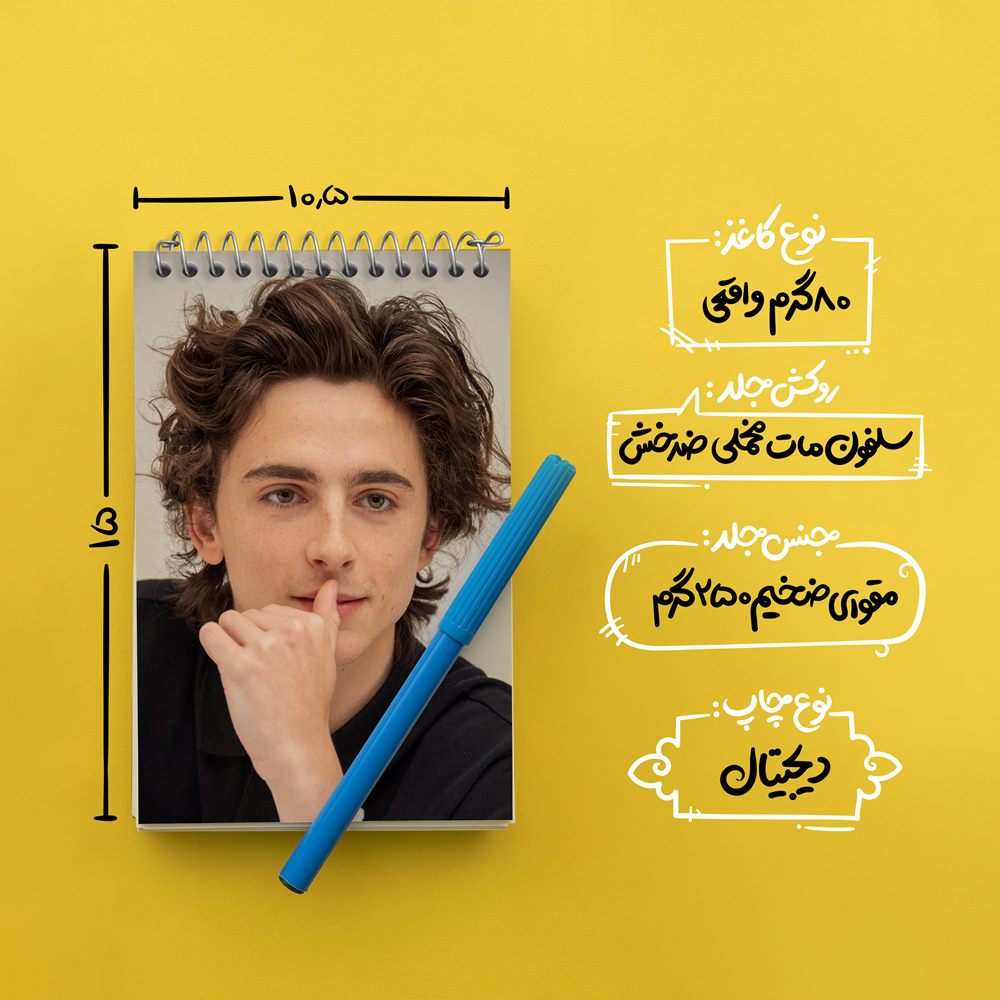 برند خندالو در زمینه تولید انواع دفاتر فانتزی و تحصیلی فعالیت میکند که به دلیل جذابیت ظاهری و طرح های متنوع طرفداران زیادی دارد. دفتر یادداشت خندالو طرح تیموتی شالامی Timothée Chalamet محصولی مناسب برای همه عاشقان لوازم التحریر است و همچنین همه کسانی که بنا به موقعیت تحصیل یا شغلشان با دفتر و نوشت افزار زیاد سر و کار دارند. در تولید دفتر یادداشت خندالو طرح تیموتی شالامی Timothée Chalamet از نوع صحافی فنر مارپیچ استفاده شده که در این نوع صحافی برگهها به راحتی چرخیده و یا بیرون آورده می شوند. دفتر های خندالو دارای جلد انعطاف پذیر از جنس مقوای گلاسه 250 گرم با روکش سلفون مات مخملی است که به شما امکان میدهد از دفتر خود بدون اینکه نگرانی از شکستن یا خراب شدن جلد را داشته باشید استفاده کنید و همچنین در این دفاتر از کاغذ 80 گرم با کیفیت استفاده شده که باعث میشود هنگام نوشتن به خوبی جوهر قلم بر روی صفحه نشسته و از خط خوردگیها جلوگیری کند. دفتر یادداشت خندالو با جنس و دوام مناسب، برگه های کاملاً سفید و خطوط طوسی دقیق را داراست که انسان را به نوشتن منظم و زیبا ترغیب میکند. طراحی کاملاً مناسب این دفاتر، به همراه کیفیت بالا، از آن یک محصول مورد علاقه و قابل اعتماد برای همه مقاطع تحصیلی میسازد. دفتر یادداشت خندالو طرح تیموتی شالامی Timothée Chalamet انتخابی هوشمندانه و مناسب برای افرادی است که به دنبال دفتری با کیفیت و کاربرد عالی هستند. این دفتر، همراه خوبی برای شما در تمام مراحل تحصیل و کار خواهد بود و تجربهای لذتبخش از نوشتن و آموختن را به شما هدیه میدهد.